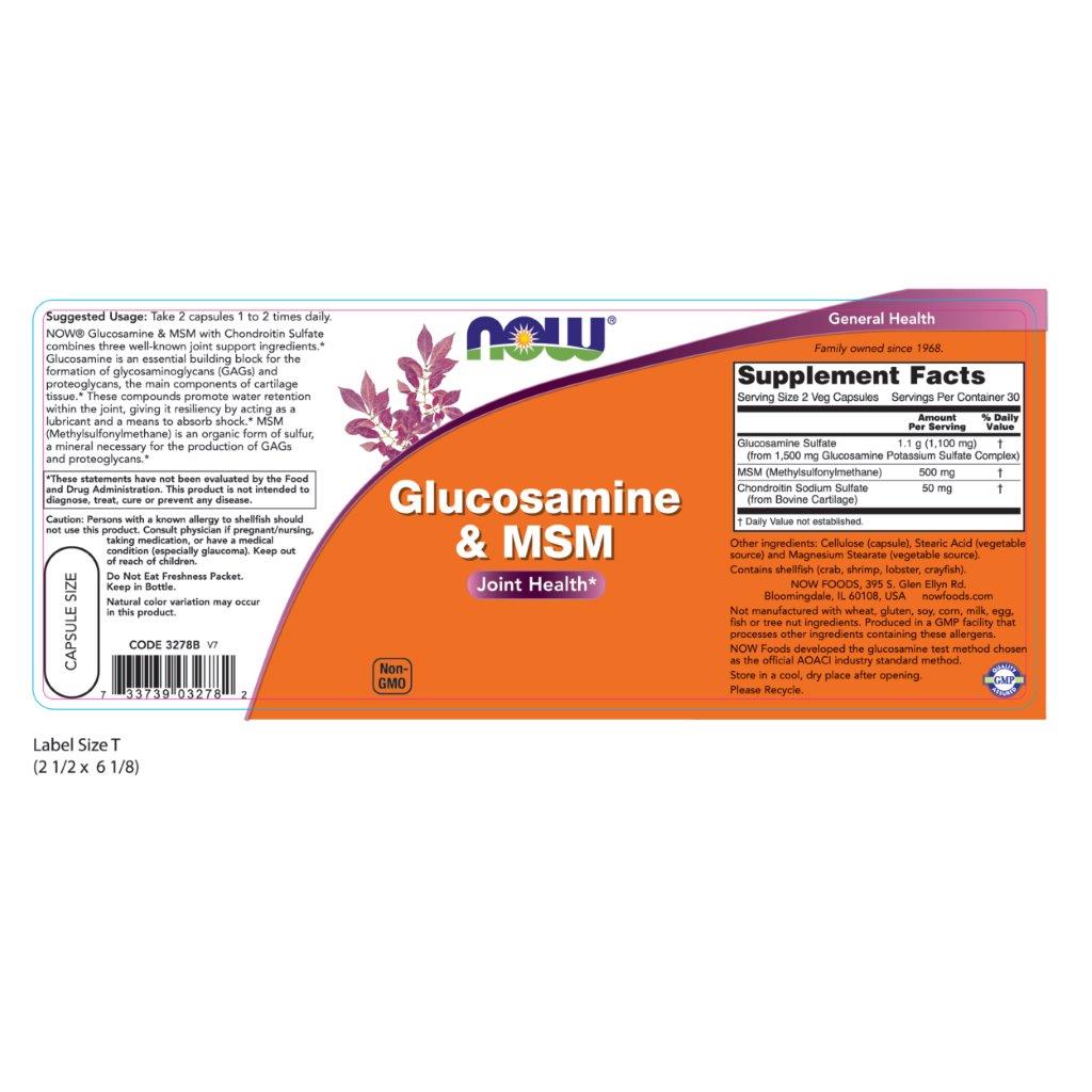 Glucosamin Sulfate: 1.1g(1100mg) (Từ 1500mg Glucosamin potassium sulfate tổng hợp) MSM (Methylsulfonylmethane): 500mg