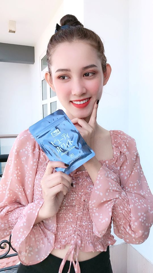Viên uống trắng da Magic White Sản phẩm tiềm năng thế hệ mới của nhà Magic Box, được nghiên cứu phát triển bởi các chuyên gia hàng đầu Nhật Bản.   Công thức của Magic White : Công thức độc đáo với tinh chất nhân tố C-H-A có cơ chế giúp phục hồi và dưỡng trắng chuyên sâu Deep White. Nguồn Vitamin C giúp tạo màn chắn bảo vệ trên bề mặt da, giúp bảo vệ da khỏi tác hại của tia UV. Hoạt tính trong mỗi viên trắng da Magic White có giá trị dinh dưỡng tương đương với 6,6kg cam đỏ Sicily, 4,87kg  lựu đỏ Aomori và 0,1gr L-Cystine. Là sự kết hợp hoàn hảo từ các loại nguyên liệu thiên nhiên thông qua công nghệ chiết xuất khép kín đến từ Nhật Bản. Chất Axit Ellagic trong Lựu đỏ có tác dụng gây ức chế hoạt động của Tyrosinase một cách hiệu quả từ đó gây hạn chế sự hình thành Melanin trong da từ đó giúp làn da trắng sáng một cách tự nhiên từ trong ra ngoài. L- Cystine trong có tác dụng ức chế sự hình thành Melanin thủ phạm gây ra nám tàn nhang từ đó thúc đẩy quá trình trao đổi chất của da, từ từ thải melanin từ trong da ra ngoài. Công dụng :