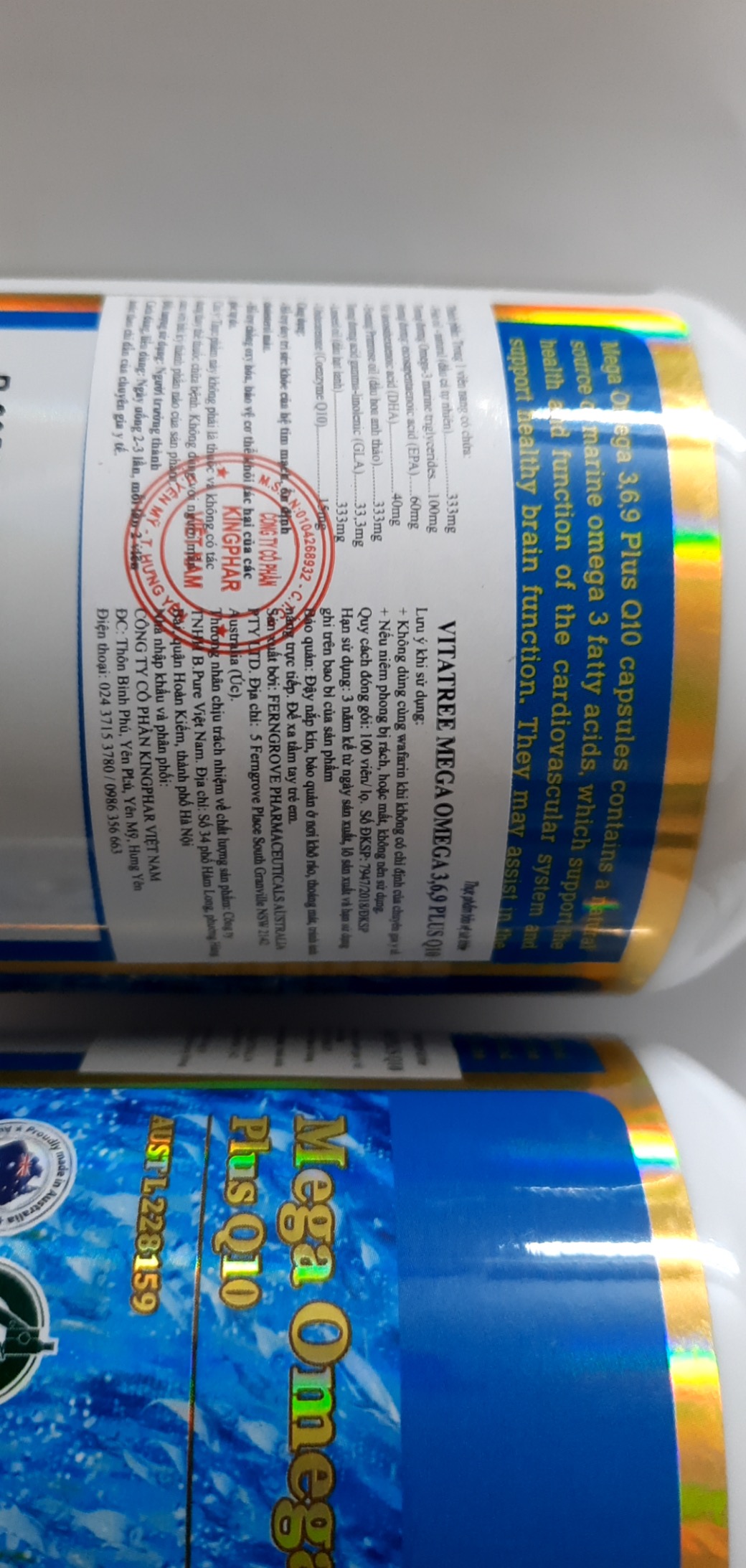 Mua tại TiktokViên uống Vitatree Mega Omega 3,6,9 Plus Q10 chứa Omega 3 tự nhiên tinh chiết từ dầu gan cá hỗ trợ chức năng hệ tim mạch và thần kinh, duy trì tỷ lệ cholesteron HDL và LDL. Sự kết hợp cân bằng hoàn hảo này chứa một nguồn axit béo omega 3 tự nhiên, nhằm cung cấp các chất dinh dưỡng cho các hoạt động chống oxy hóa, sức khỏe tim mạch bình thường và chức năng não khỏe mạnh. CoQ10 (tức Coenzym - Q10 hay viết tắt là Q10) là một loại men tự nhiên có mặt trong khắp tất cả các mô của cơ thể và có nhiều ở mô tim gan, tụy, thận, tạng… CoQ10 tham gia vào các quá trình chuyển hóa của các cơ quan trong cơ thể.