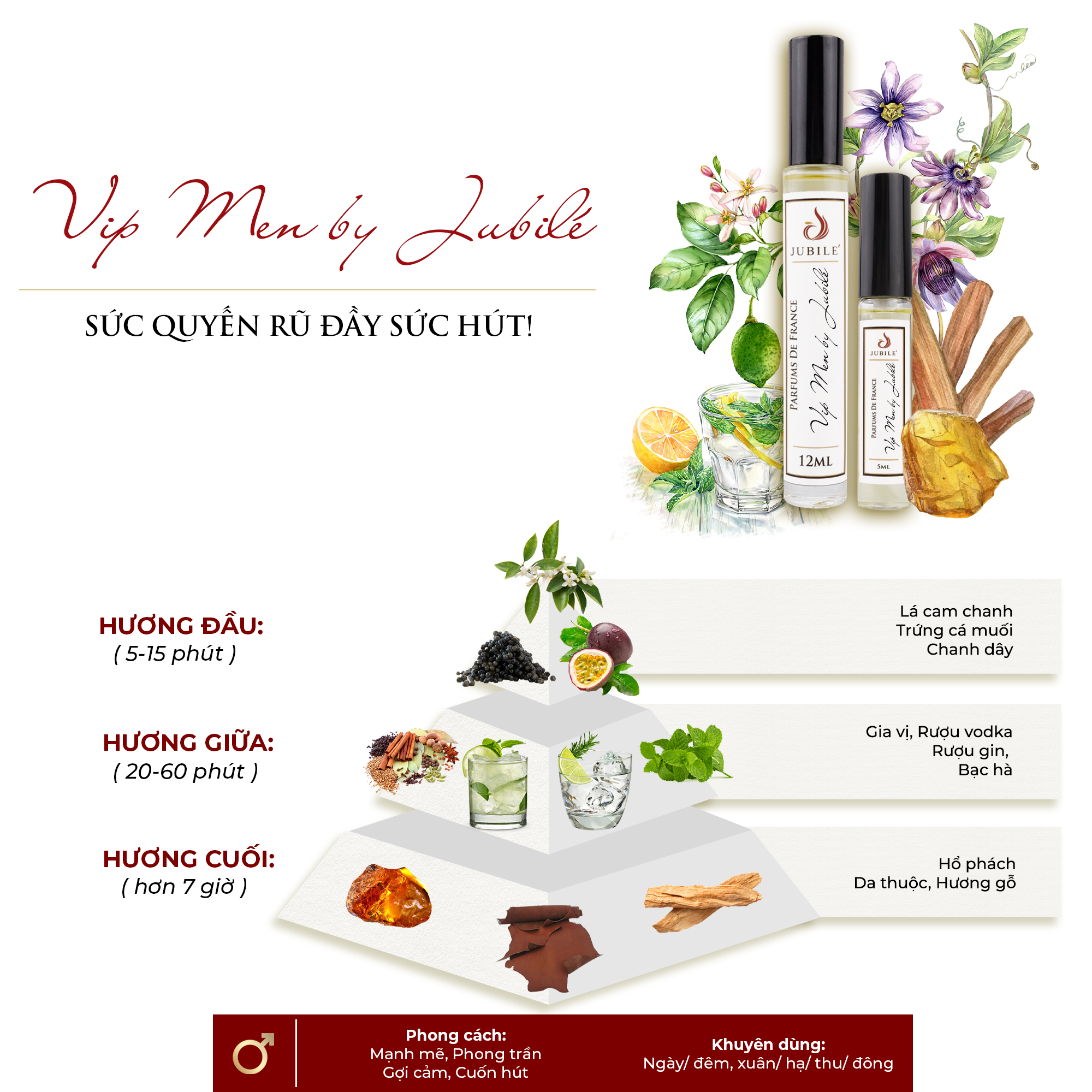 ✨Vip Men by Jubilé - Tinh dầu nước hoa Pháp nữ Dạng lăn 12ml Thơm Lâu, Sang Trọng, Quyến Rũ