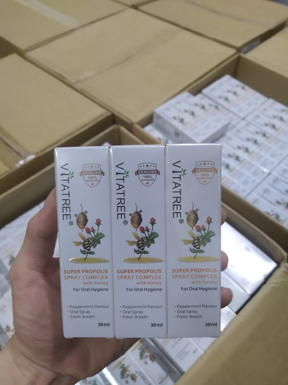 Xịt Keo Ong Vitatree Super Propolis Spray Complex With Manuka 15+ , 30ml, Hàng Nội Địa Úc, Tăng Đề Kháng Tự Nhiên, Kháng Khuẩn, Virut, Nấm, Giảm Đau Rát Viêm Họng, Ho, Nhiệt Lỡ Loét