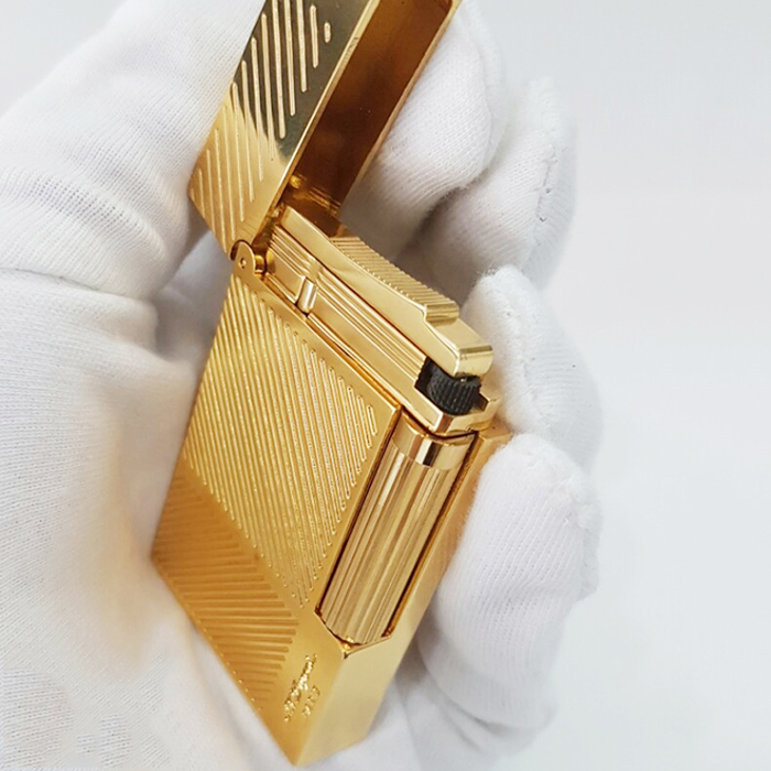 Mở Hộp Trải Nghiệm Bật Lửa Dupont Gas Đá Họa Tiết Kẻ Dọc D75 Chặn 4 Góc Cao Cấp