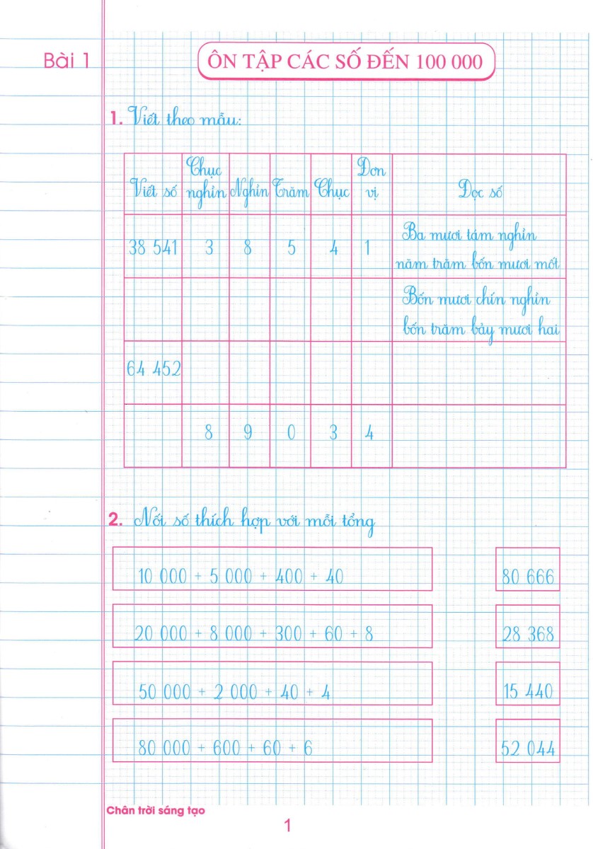VỞ Ô LI BÀI TẬP TOÁN LỚP 4 QUYỂN 1 BÀI 1 ÔN TẬP CÁC SỐ ĐẾN 100 000 TRANG 1
