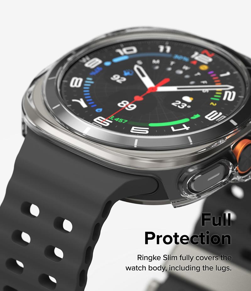 Vỏ ốp kèm dán cường lực Galaxy Watch Ultra RINGKE Slim & Glass Ưu điểm sản phẩm - Thương hiệu RINGKE Hàn Quốc, vừa vặn hoàn toàn Galaxy Watch Ultra (47 mm). - Thiết kế