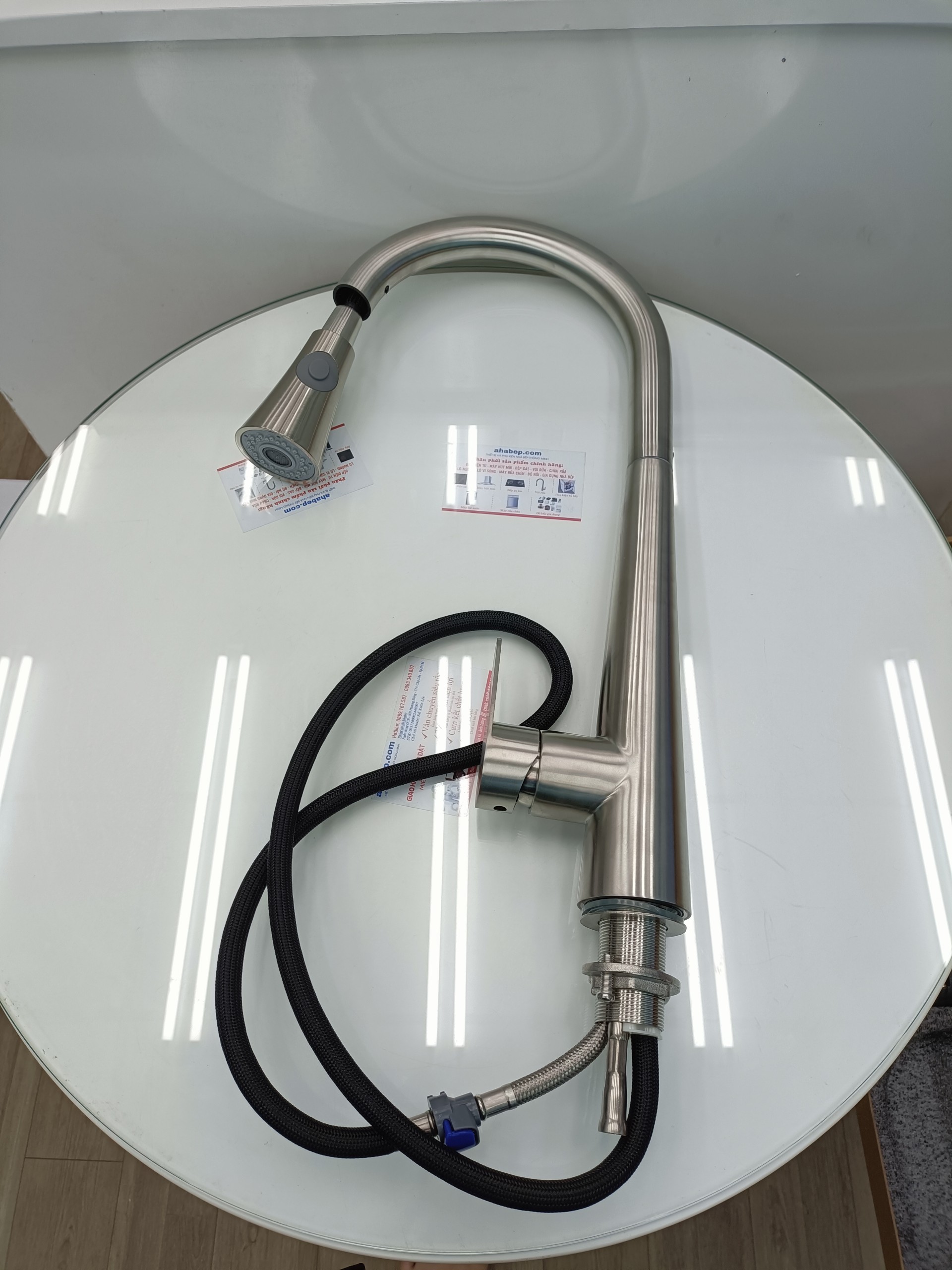 Chất liệu: Inox 304 Thiết kế 2 đường nước nóng lạnh Đầu vòi rửa có thể kéo dài Đầu vòi tạo bọt, giúp tiết kiệm nước và hạn chế bắn nước khi sử dụng Vòi