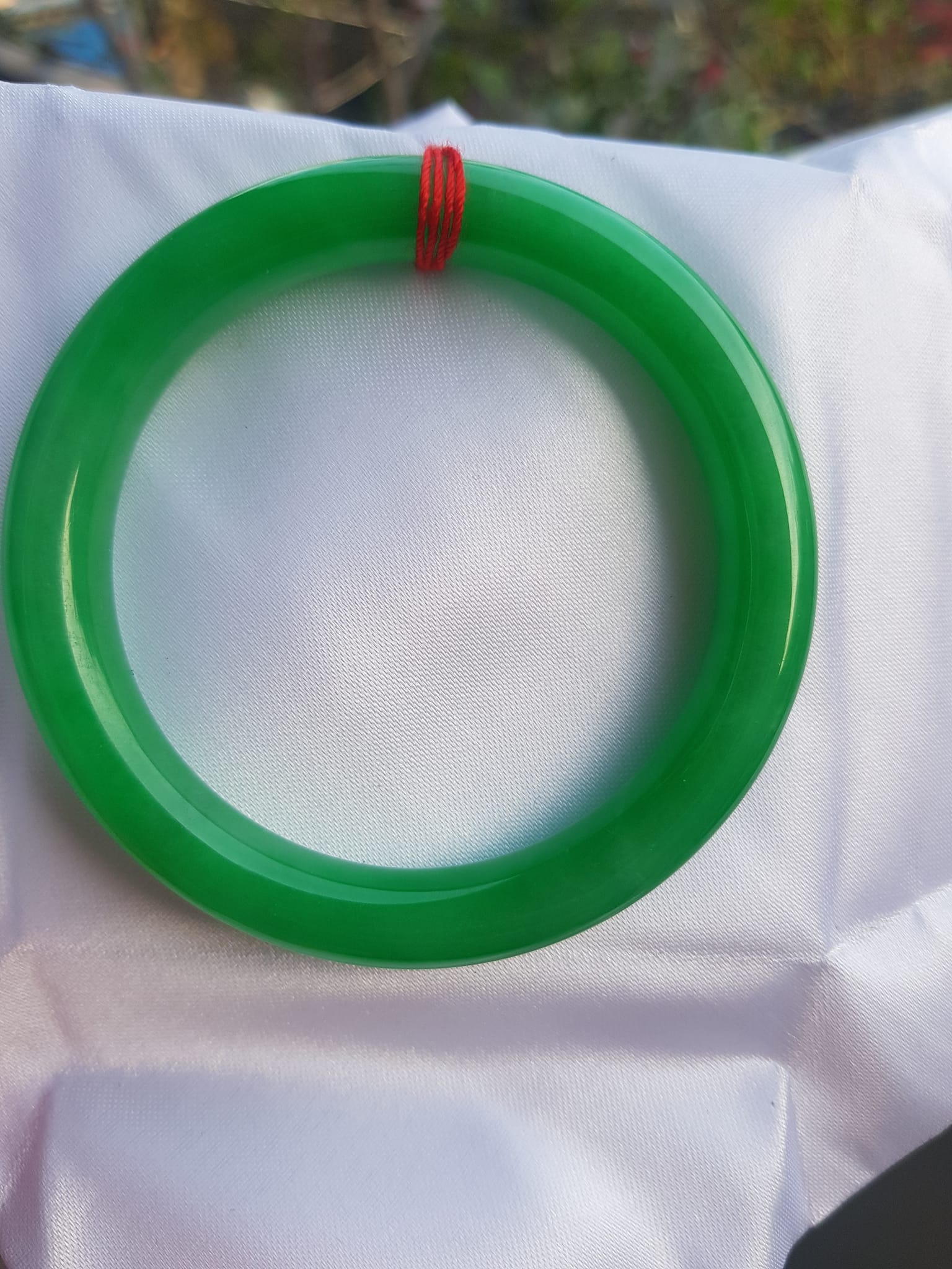 Vòng cẩm thạch Đ Lý 52mm x dầy 7,8mm màu xanh lá tươi hợp Nữ mệnh Mộc mệnh Hỏa 52kg - 56kg đeo ạ