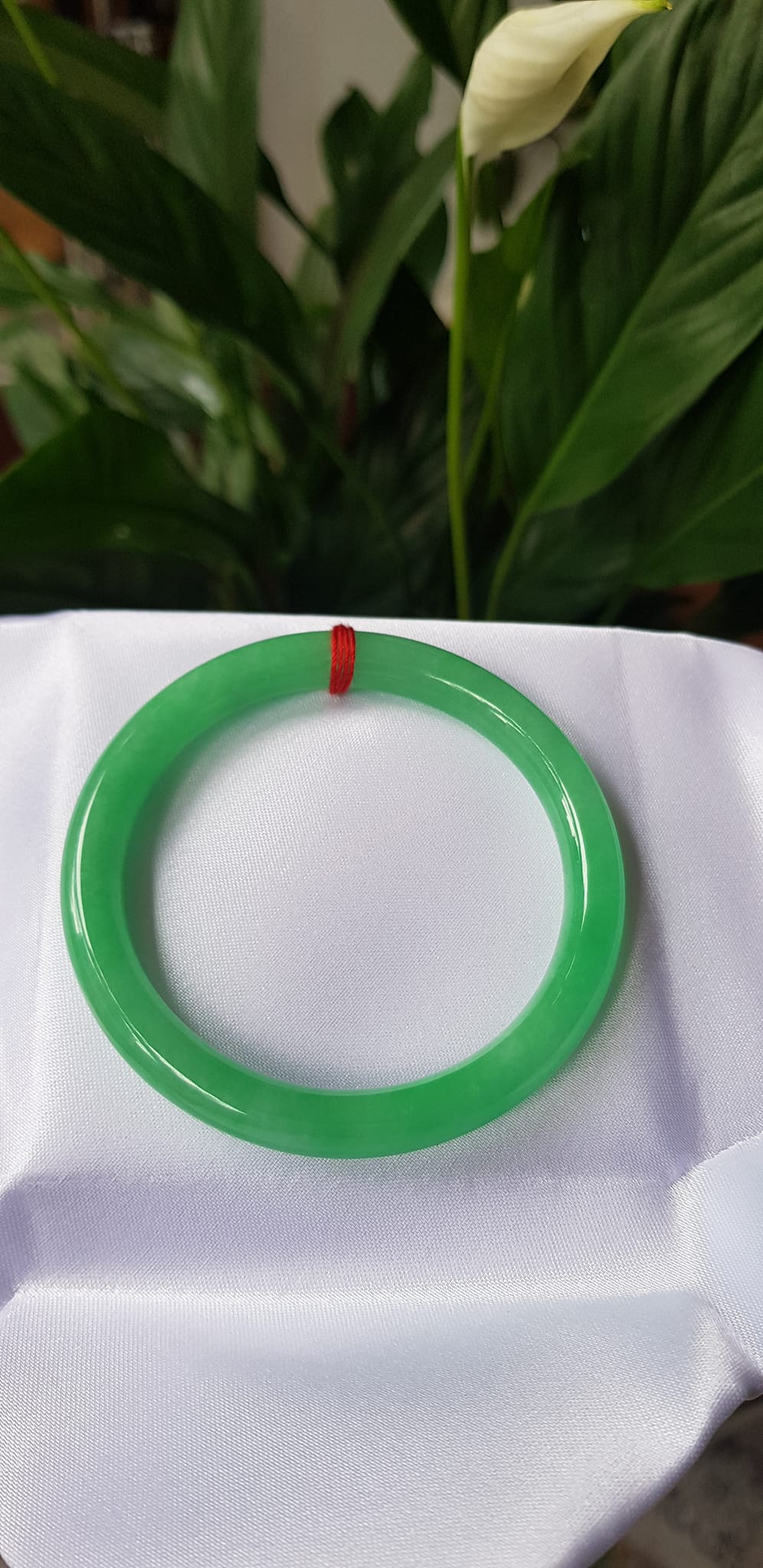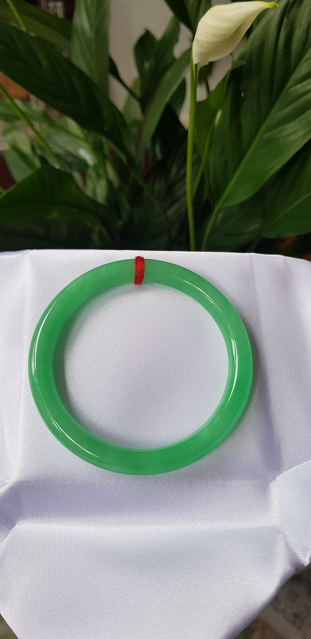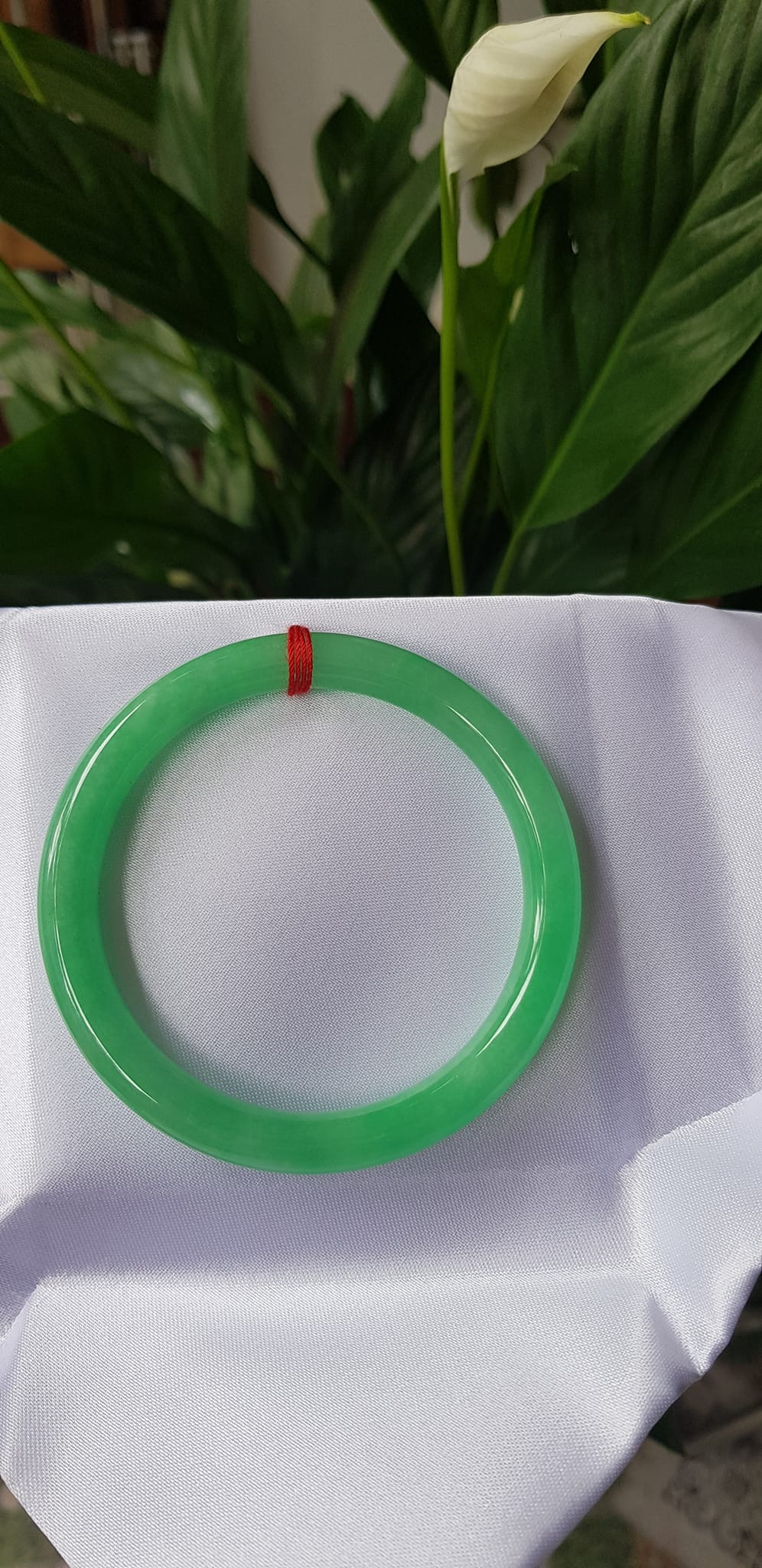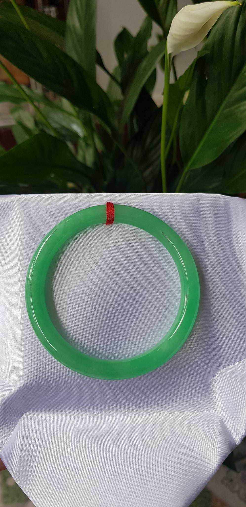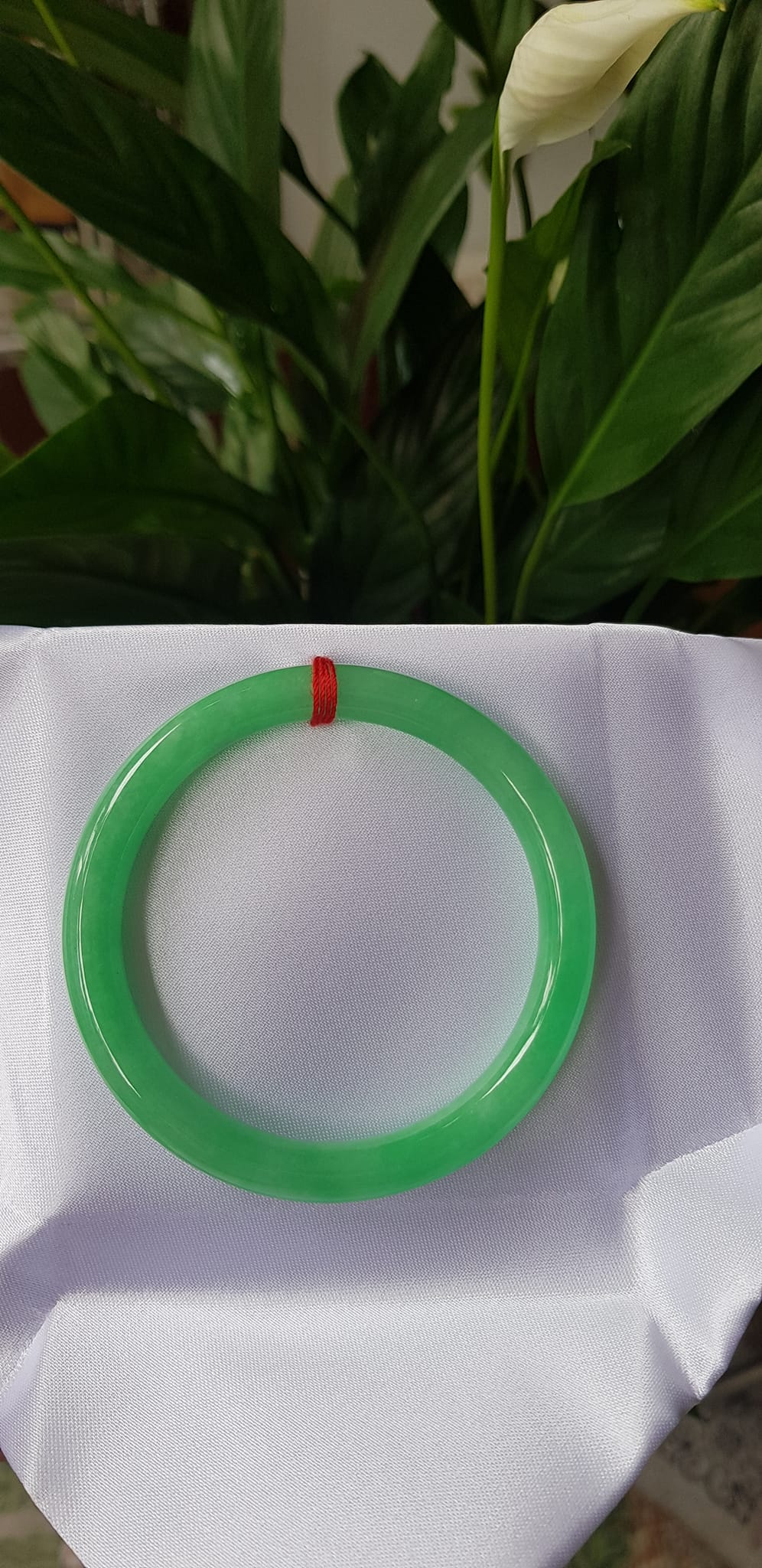 CHIẾC VÒNG TAY PHONG THỦY ĐÁ CẨM THẠCH LÝ ĐẸP K 54MM x DẦY 8MM MÀU XANH LÁ ĐỀU BÓNG ĐẸP NỮ MỆNH HỎA MỘC NỮ CÂN NẶNG 53kg đến 64kg Đeo Đẹp Tay ạ