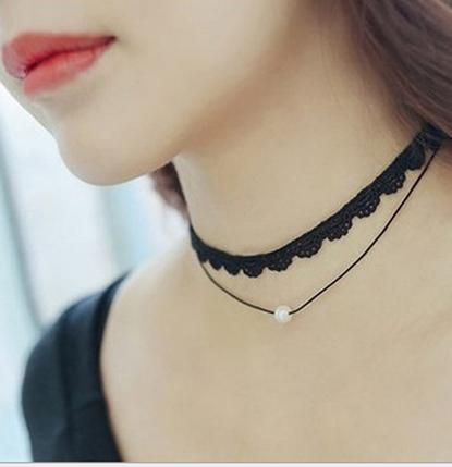 Vòng cổ choker ren trắng đính ngọc giọt nước cá tính HANA9999 Shop