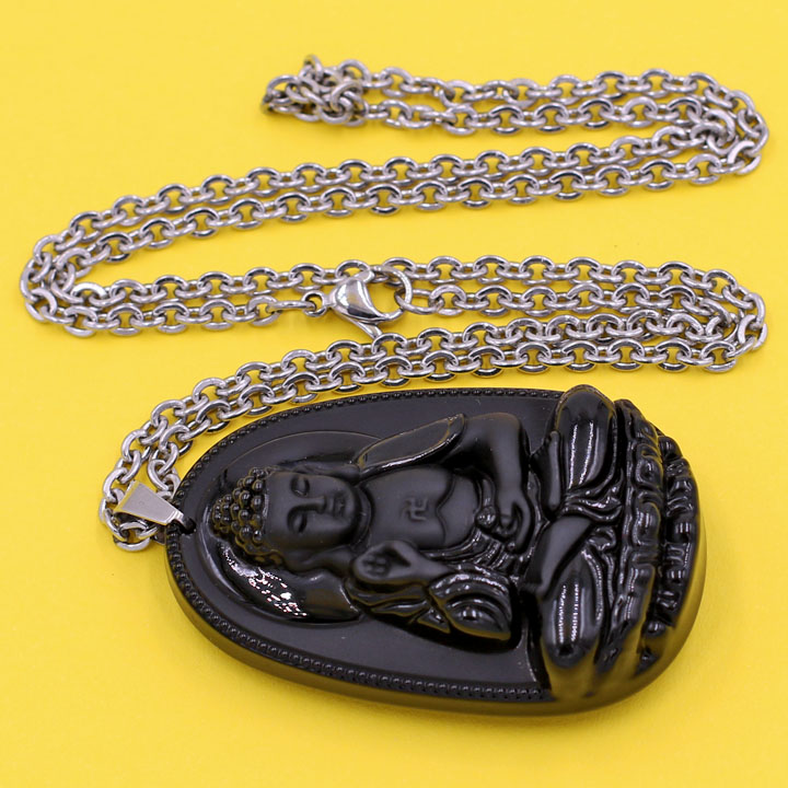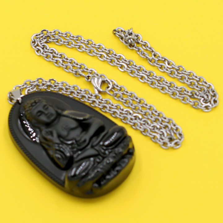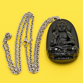 ✨Vòng cổ mặt Phật A Di Đà - thạch anh đen 4.3cm DITTEO7 - dây inox - tuổi Tuất, Hợi