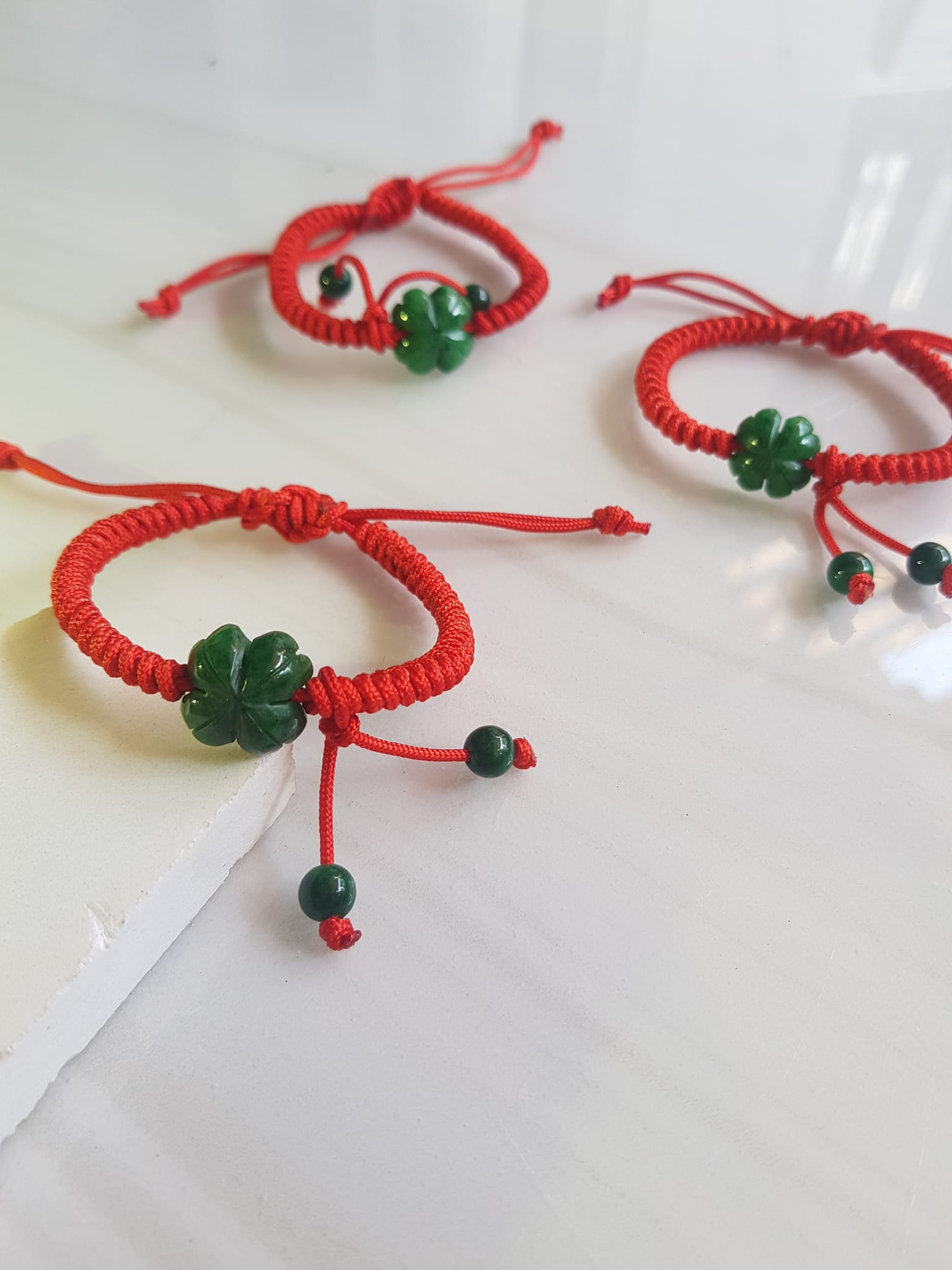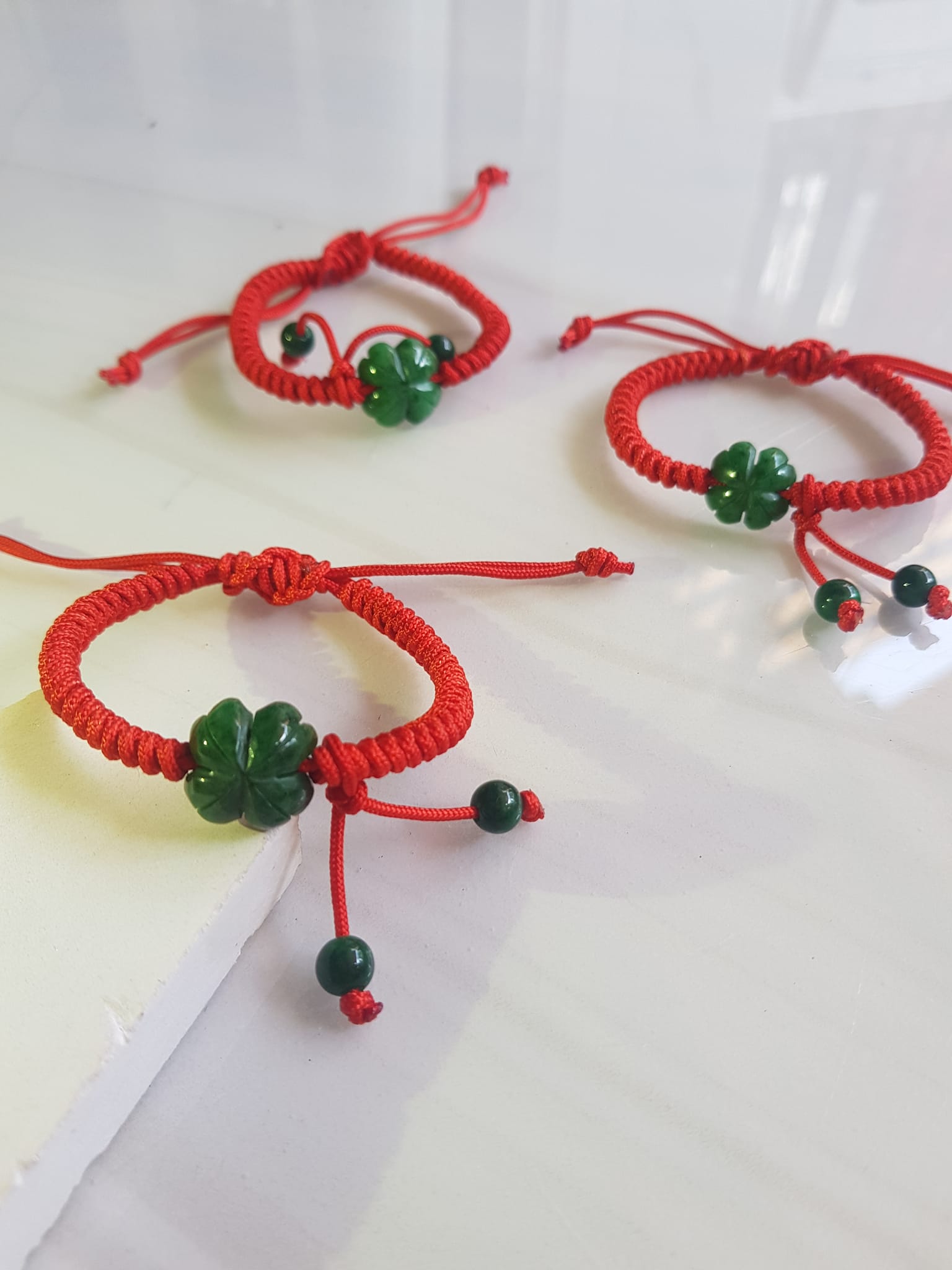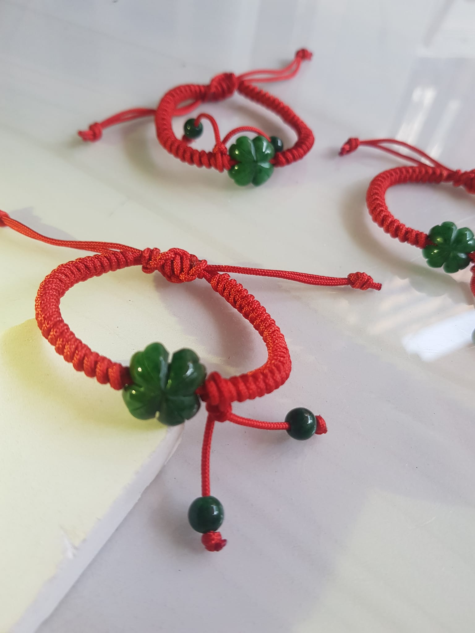 Vòng Đeo Tay Nữ Kiểu Dây Đỏ Cỏ 4 lá Xanh mới lạ đẹp lắm Chất liệu đá cẩm thạch xanh lá cỏ thắt dây kiểu đỏ rẻ đẹp Nữ đeo tay may mắn tăng