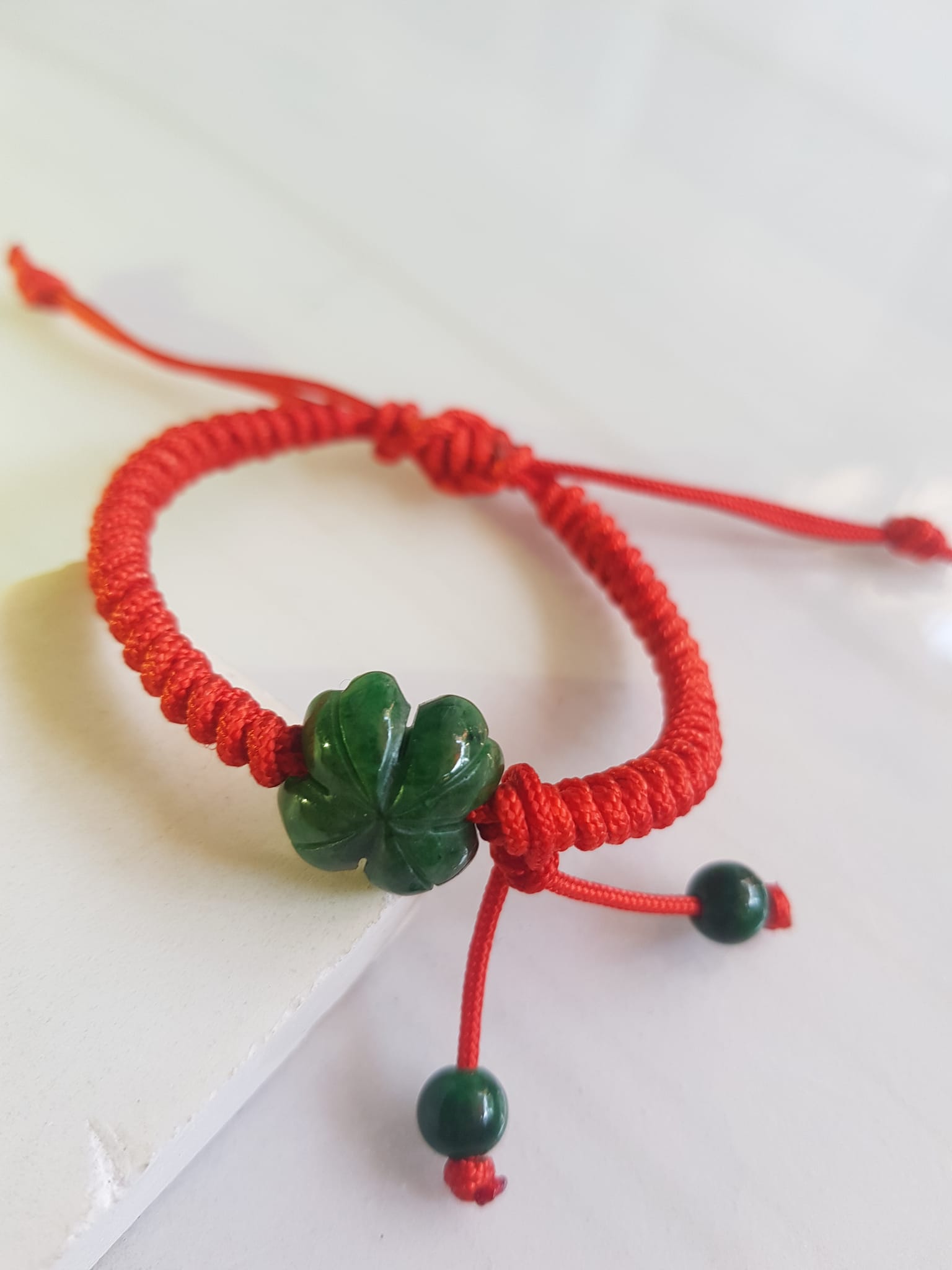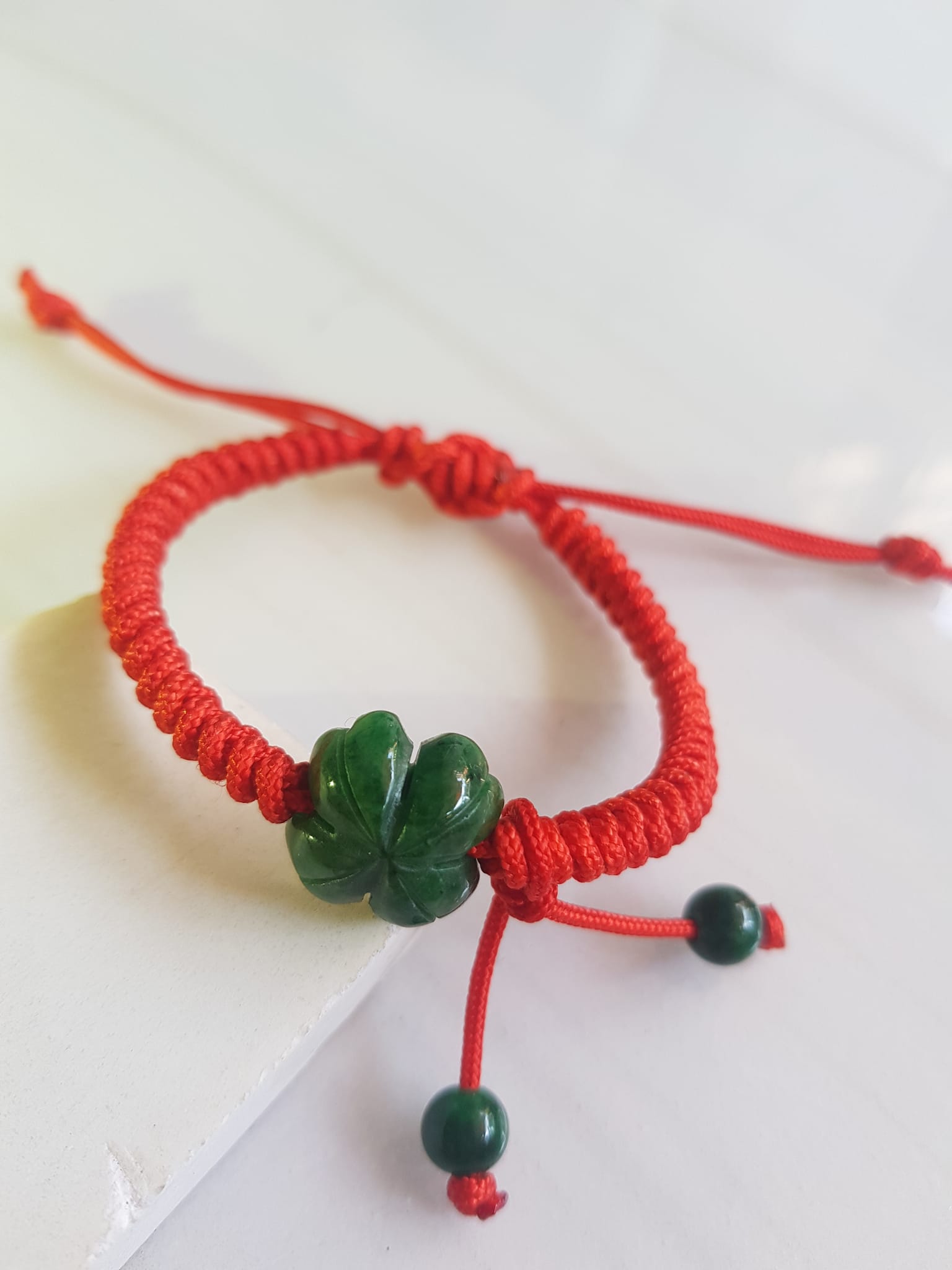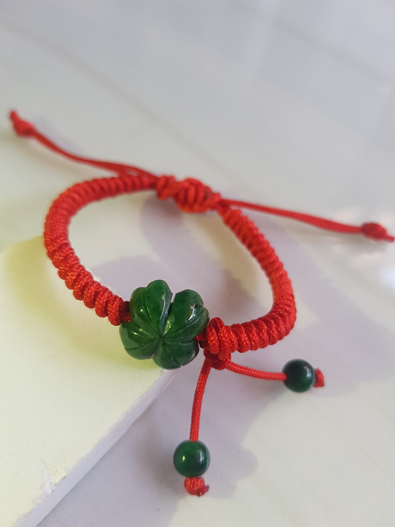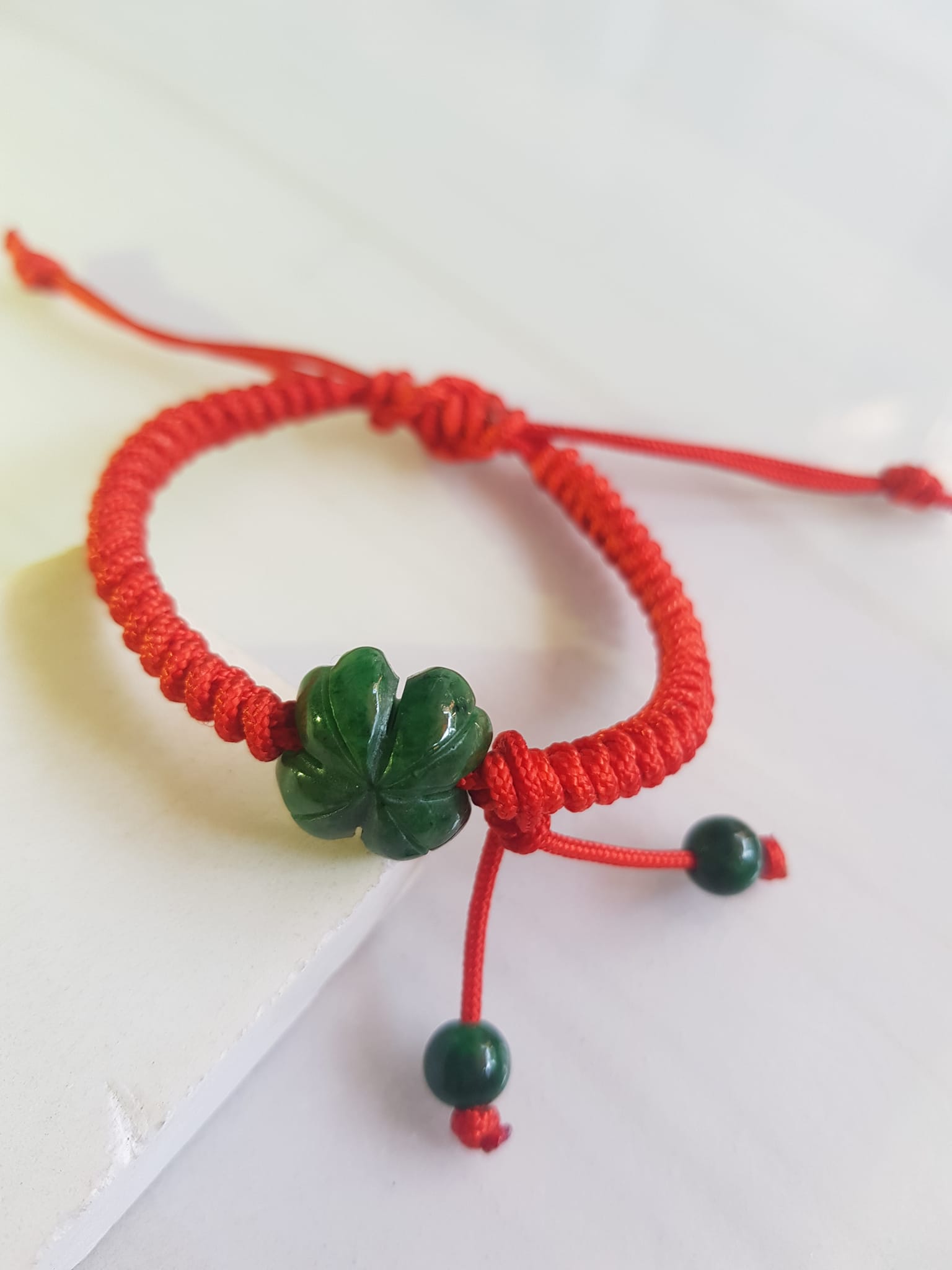 Vòng Đeo Tay Nữ Kiểu Dây Đỏ Cỏ 4 lá Xanh mới lạ đẹp lắm Chất liệu đá cẩm thạch xanh lá cỏ thắt dây kiểu đỏ rẻ đẹp Nữ đeo tay may mắn tăng