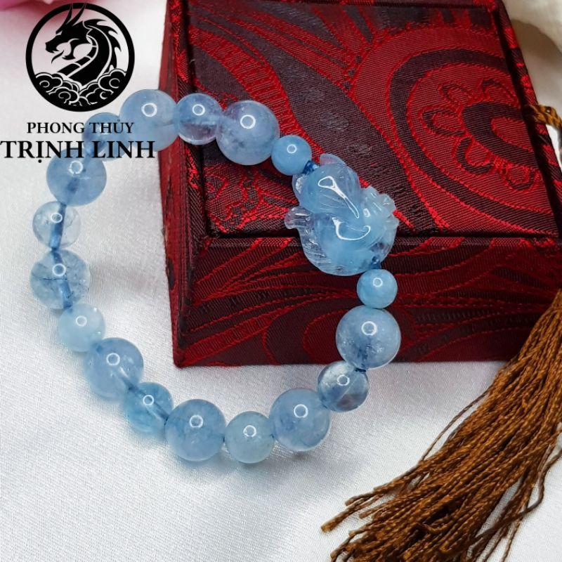 Vòng tay NỮ Đá AQUA XANH ĐẸP size hạt 9mm - XANH AQUA NHẸ ĐẸP NỮ MỆNH THUỶ MỘC Hỏa đeo - Vòng tay phong thủy đẹp đeo hợp tuổi hợp mệnh tốt làm ăn