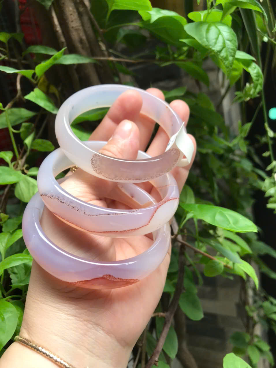 Vòng tay Nữ Bản Hẹ Mới Đá Mã Não Bông Tuyết Hồng nhẹ trắng trong bóng quá đẹp luôn ạ Ni 53mm x Cao 11mm x dầy 7mm Nữ Cân nặng 52kg - 55kg đeo