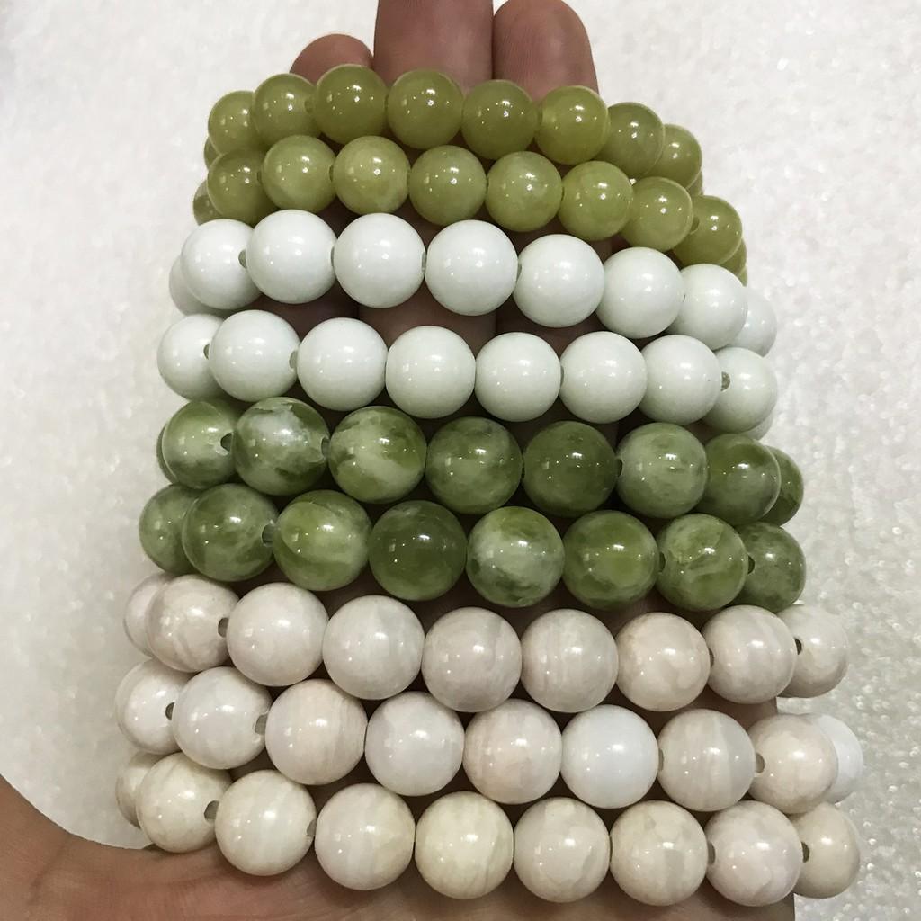 Chất liệu: đá ngọc 100% đá VN khai thác và chế tác tại VN Kiểu dáng: Hạt tròn vân hoa tinh tế ( trắng vàng trẻ trung ) Màu sắc trẻ trung, lạ, rất bắt