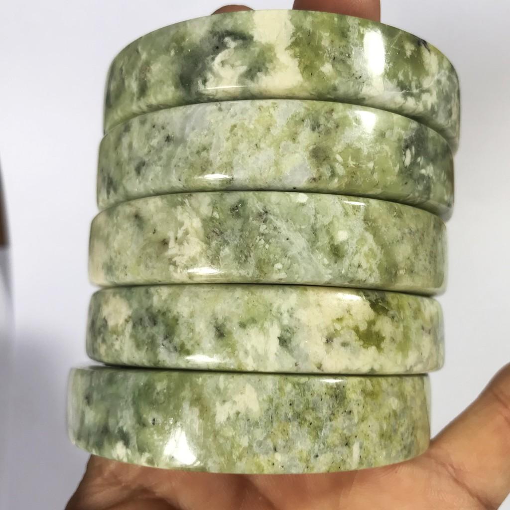 1. Chất liệu: Ngọc Serpentine 100% tự nhiên khai thác và chế tác tại Yen bai, đặc biệt phù hợp cho người mệnh Thủy và Kim 2. Kích thước: Size 6.6 cm tương đương với chu vi tay