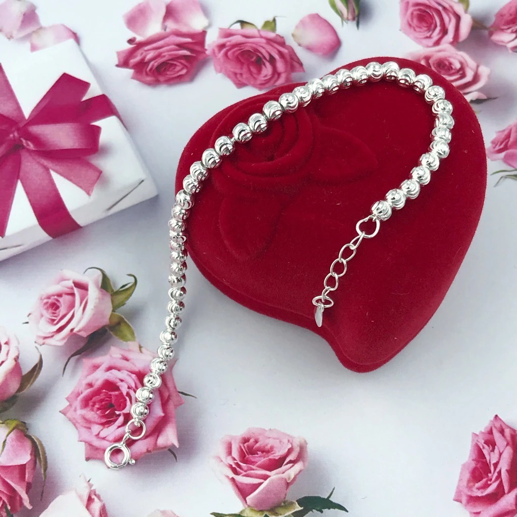 Là con gái, hẳn bạn luôn bị cuốn hút trước những bộ cánh thời trang và những đôi giày sành điệu. Tuy nhiên để làm hoàn hảo hình ảnh của mình trong mắt người đối diện, các bạn cần thêm những món phụ kiện bé bé xinh xinh để điểm tô cho vẻ ngoài thêm ấn tượng. Và hôm nay, S sẽ mang đến các bạn cơ hội sở hữu chiếc lắc tay rất dễ thương, được làm bằng bạc ta. Sản phẩm thích hợp với những bạn gái có phong cách dịu dàng, nữ tính.