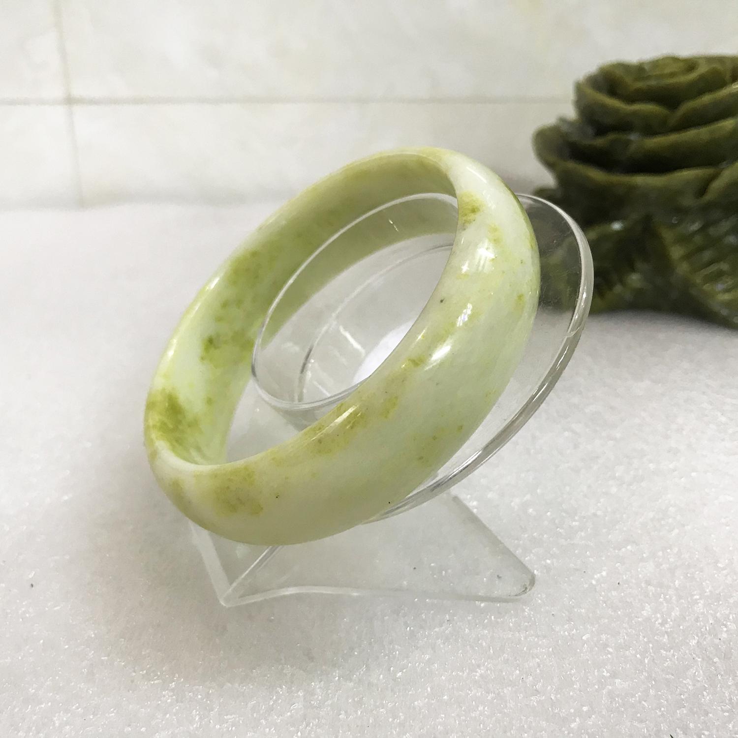 - Tại sao nên đeo ngọc thật hay đá thật? Vì nó mang năng lương dương do sự biến đổi chịu tác động của nhiệt độ rất cao trong lòng đất hàng triệu năm mà hình thành nên đá. Ngọc cũng là đá nhưng nó có độ trong và xuyên thấu ánh sáng, nó đẹp và hiếm hơn đá. Được tìm thấy ở một số nơi ở VN như tỉnh Yên Bái. Những chiếc vòng ngọc này còn gọi là đá cẩm thạch, đá ngọc serpentine được chọn tỉ mỉ từ những tảng đá tự nhiên nguyên khối. Không phải tảng đá nào cũng có chất ngọc trong vắt bên trong (màu trong thấu đèn nằm trong đá gọi là ngọc) Chất này được cưa cắt từ tảng đá và chế tác thủ công thành trang sức. Nên nó có năng lượng dương rất tích cực, Mang đá bên mình để “ nhân hữu thạch tất khang” ( Người có đá tất sẽ khỏe mạnh). Vì vậy nó có lợi cho sức khỏe Giá của nhà chế tác thủ công nên khách được dùng hàng thật với gốc của gia đình sản xuất