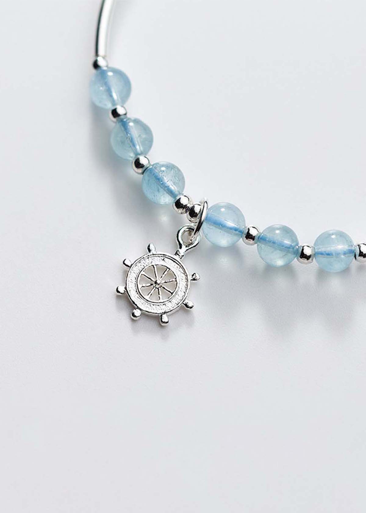 ✨Vòng tay đá Aquamarine phối charm bánh lái mệnh thủy, mộc - Ngọc Quý Gemstones