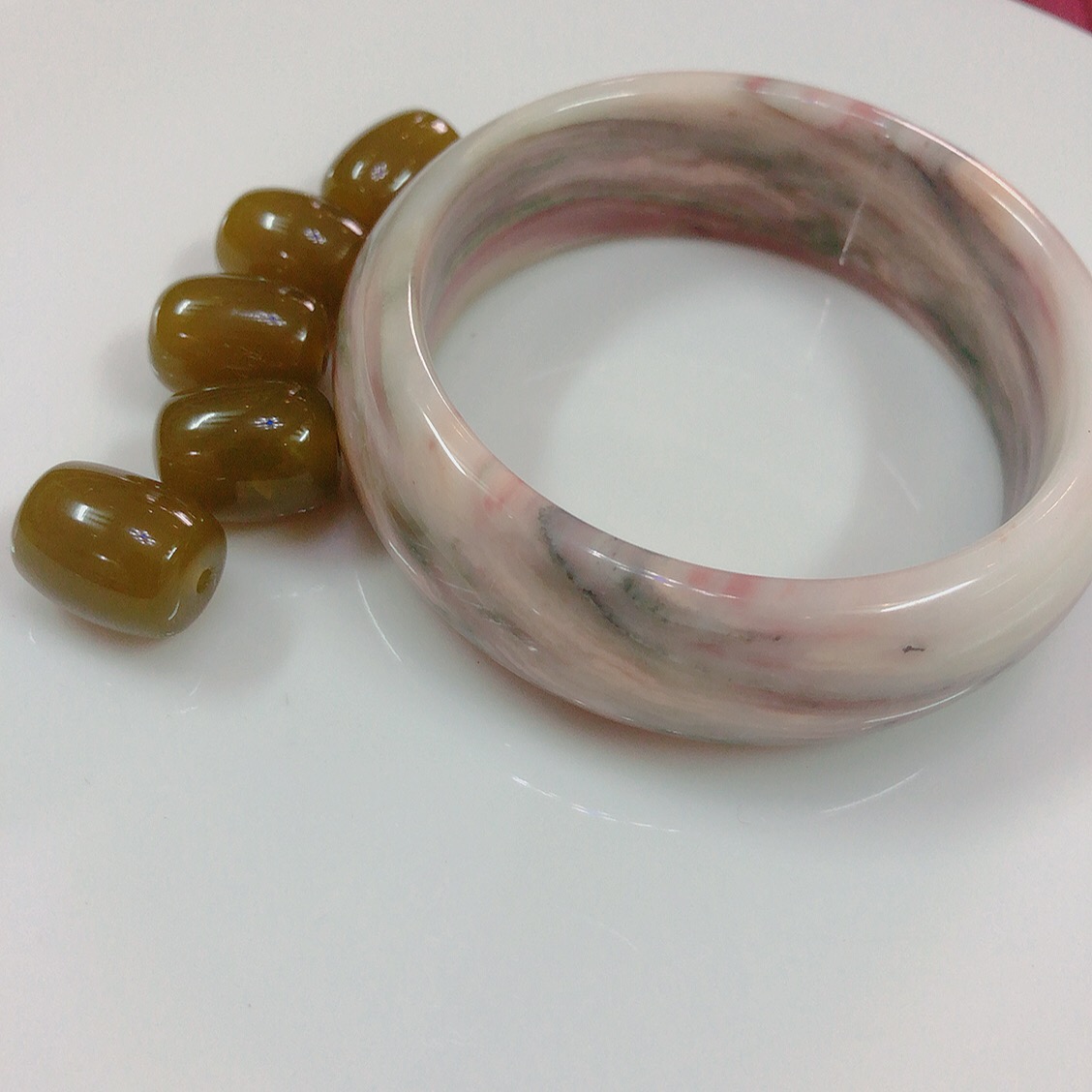 ✨Vòng tay đá cẩm thạch ngọc màu thổ cẩm tự nhiên 100%cho tất cả các mệnh