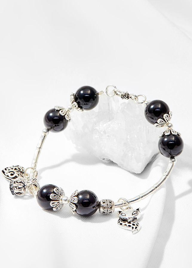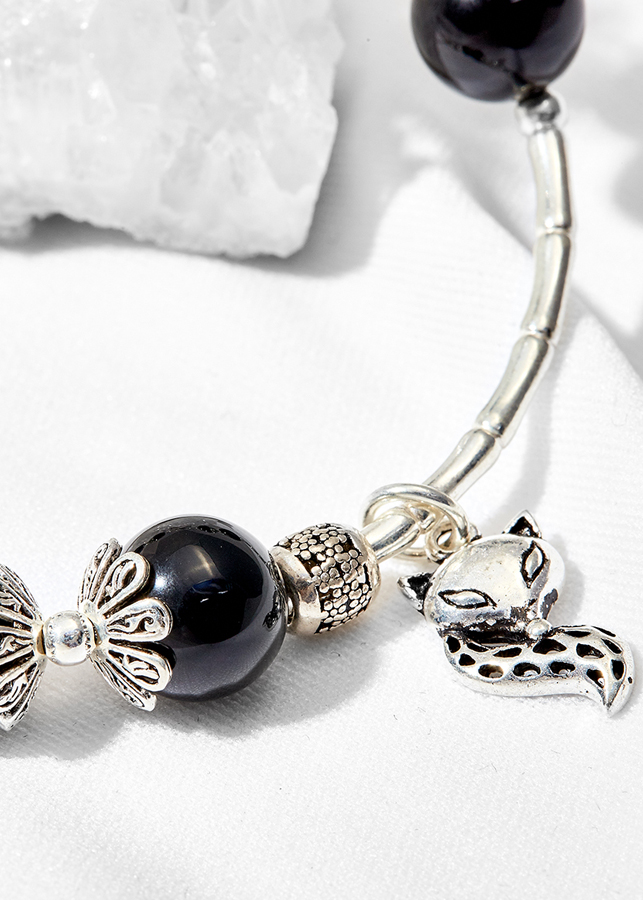 Vòng tay đá thiên nhiên phối charm hồ ly bạc | Ngọc Quý Gemstones |