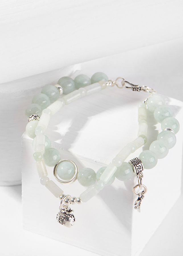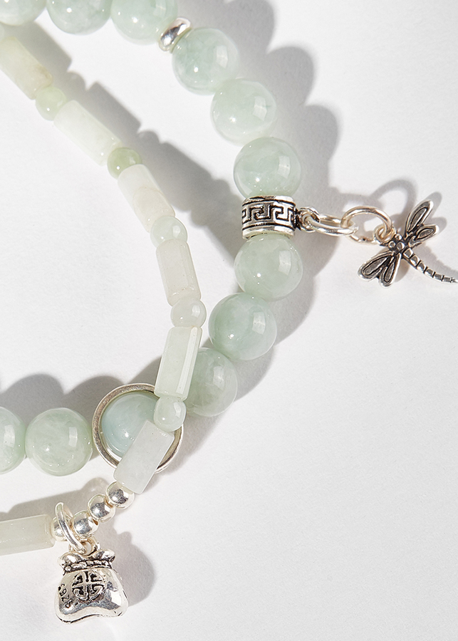 ✨Vòng tay đôi cẩm thạch phỉ thúy phối túi tiền và chuồn chuồn Ngọc Quý Gemstones