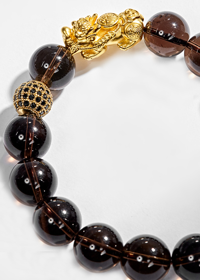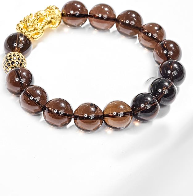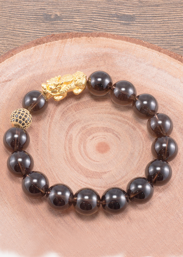 Vòng Tay Nam Đá Thạch Anh Khói Phối Tỳ Hưu Bạc Mạ Vàng 24K