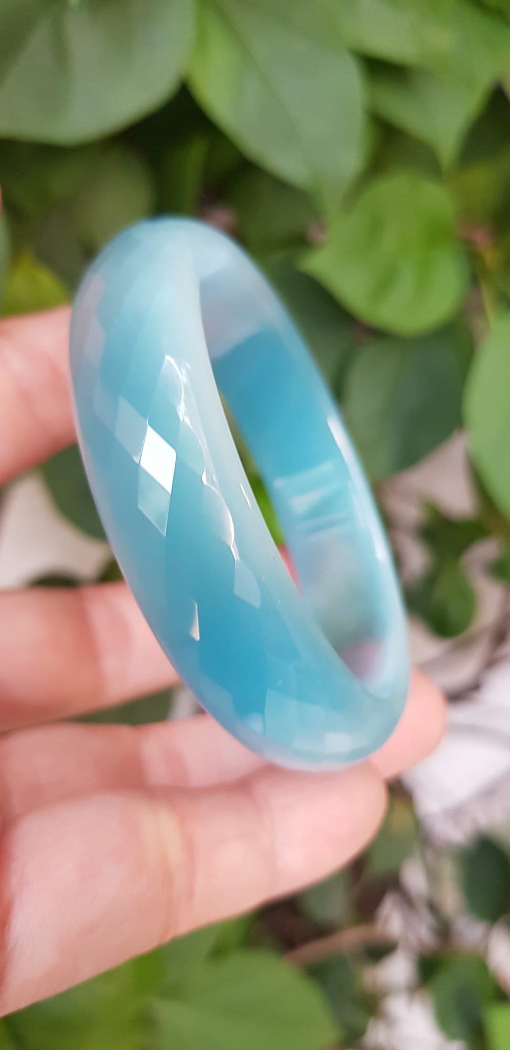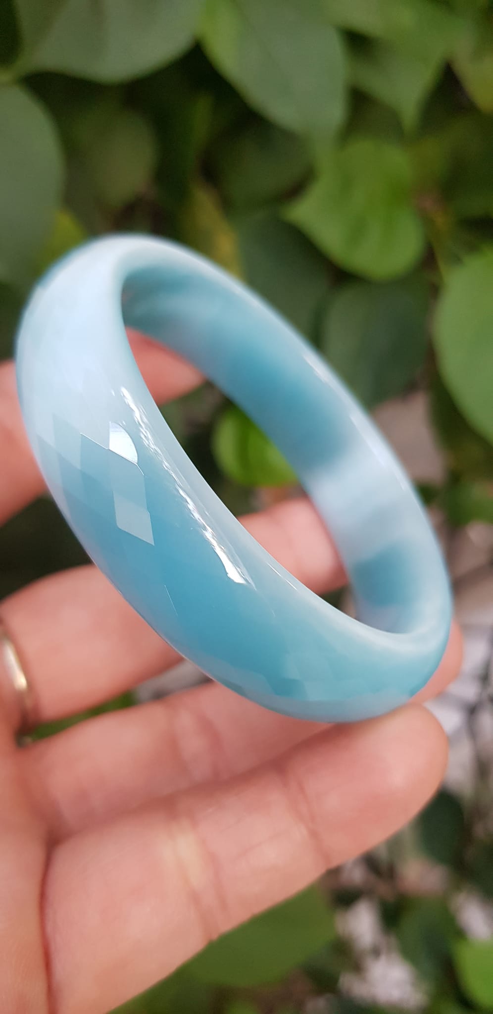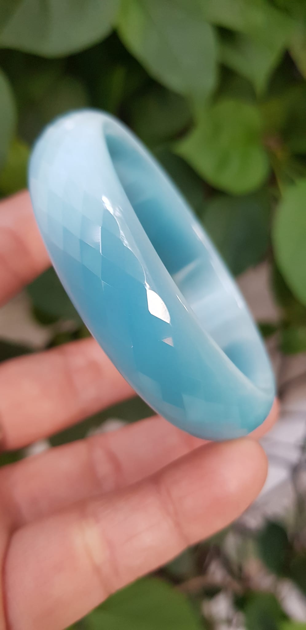 Vòng tay nữ đá mắt mèo Xanh dương nhẹ bản hẹ mới Ni 53mm x cao 12mm x dầy 6,5mm nữ 49kg - 54kg đeo