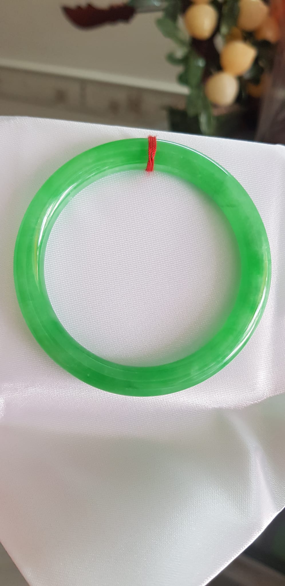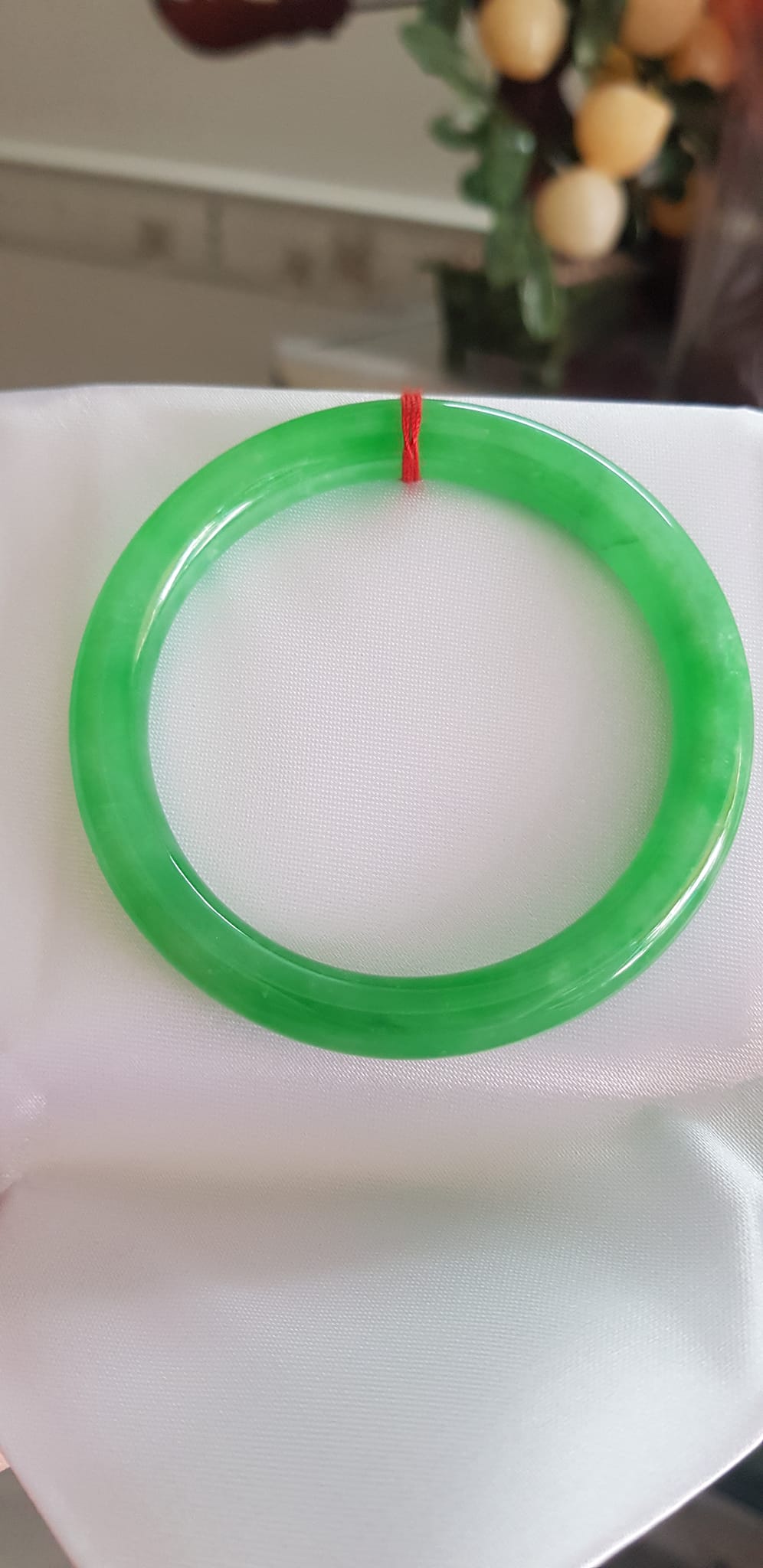 Vòng cẩm thạch Đ Lý 52mm x dầy 7,8mm màu xanh lá tươi hợp Nữ mệnh Mộc mệnh Hỏa 52kg - 56kg đeo ạ
