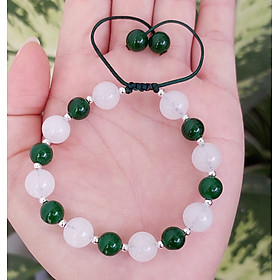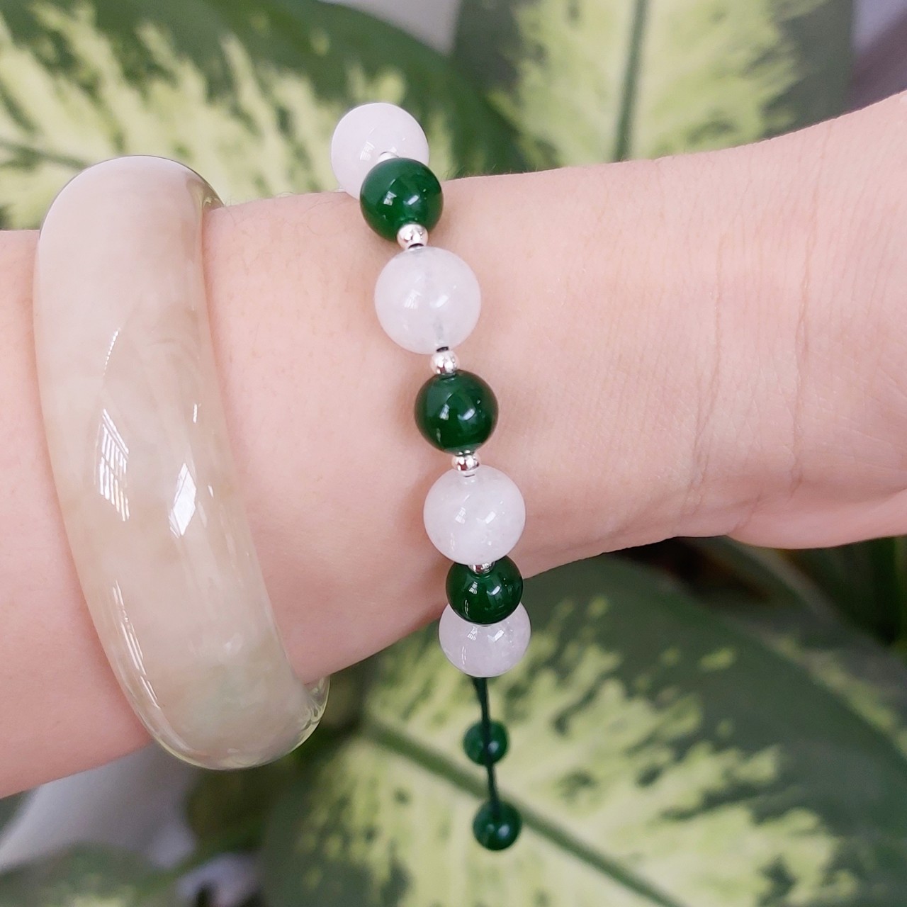 ✨Vòng tay Nữ phong thủy đá mã não trắng mix đá thạch anh xanh và bi bạc kết dây thời trang