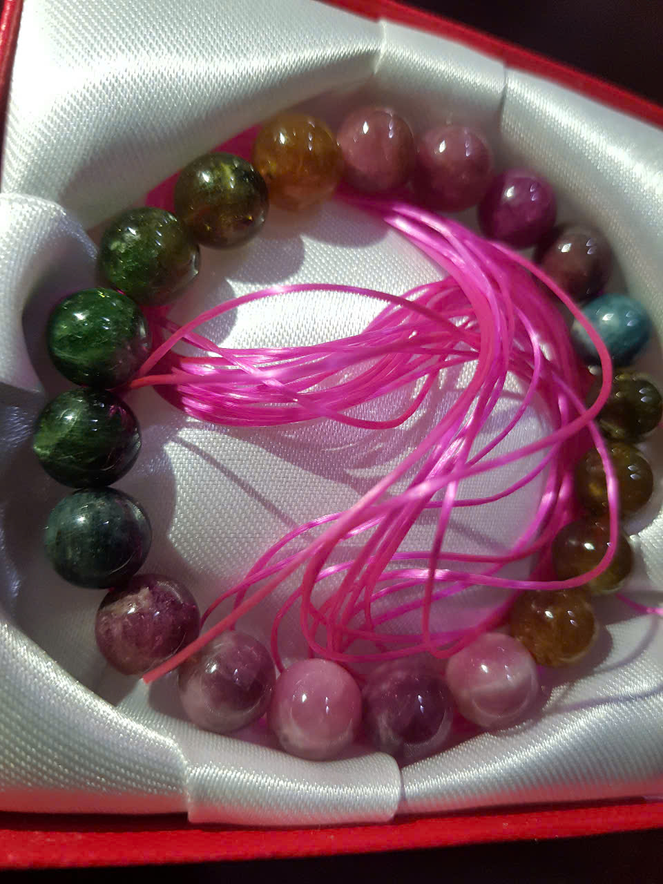 Vòng tay Nữ đá tourmaline dâu tây tự nhiên đa sắc tươi đẹp 9,5mm #godaptsunny #tourmaline #vòng