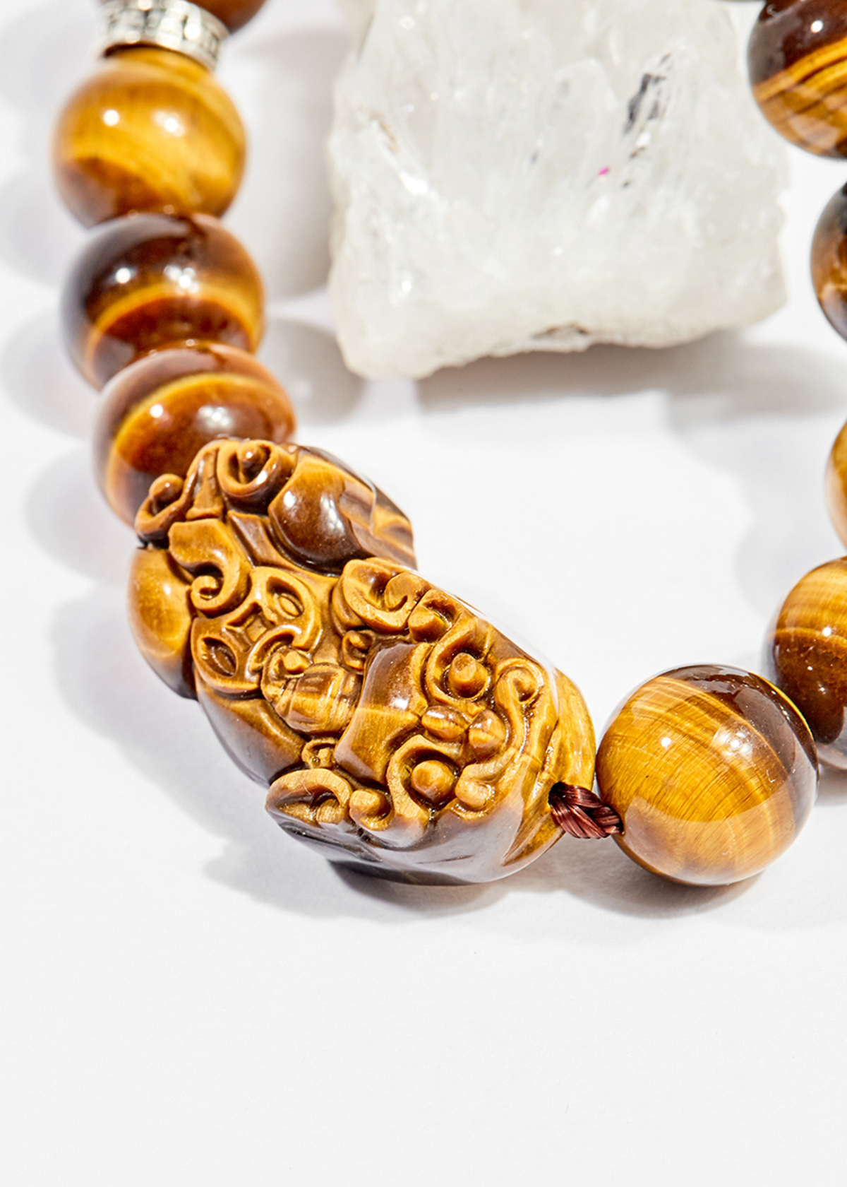 VÒNG TAY ĐÁ MẮT HỔ LU THỐNG MIX TỲ HƯU BẠC: Đá Mắt Hổ có tên khoa học là Tiger Eye, là một loại tinh thể biến chất có màu sắc từ vàng, nâu đỏ