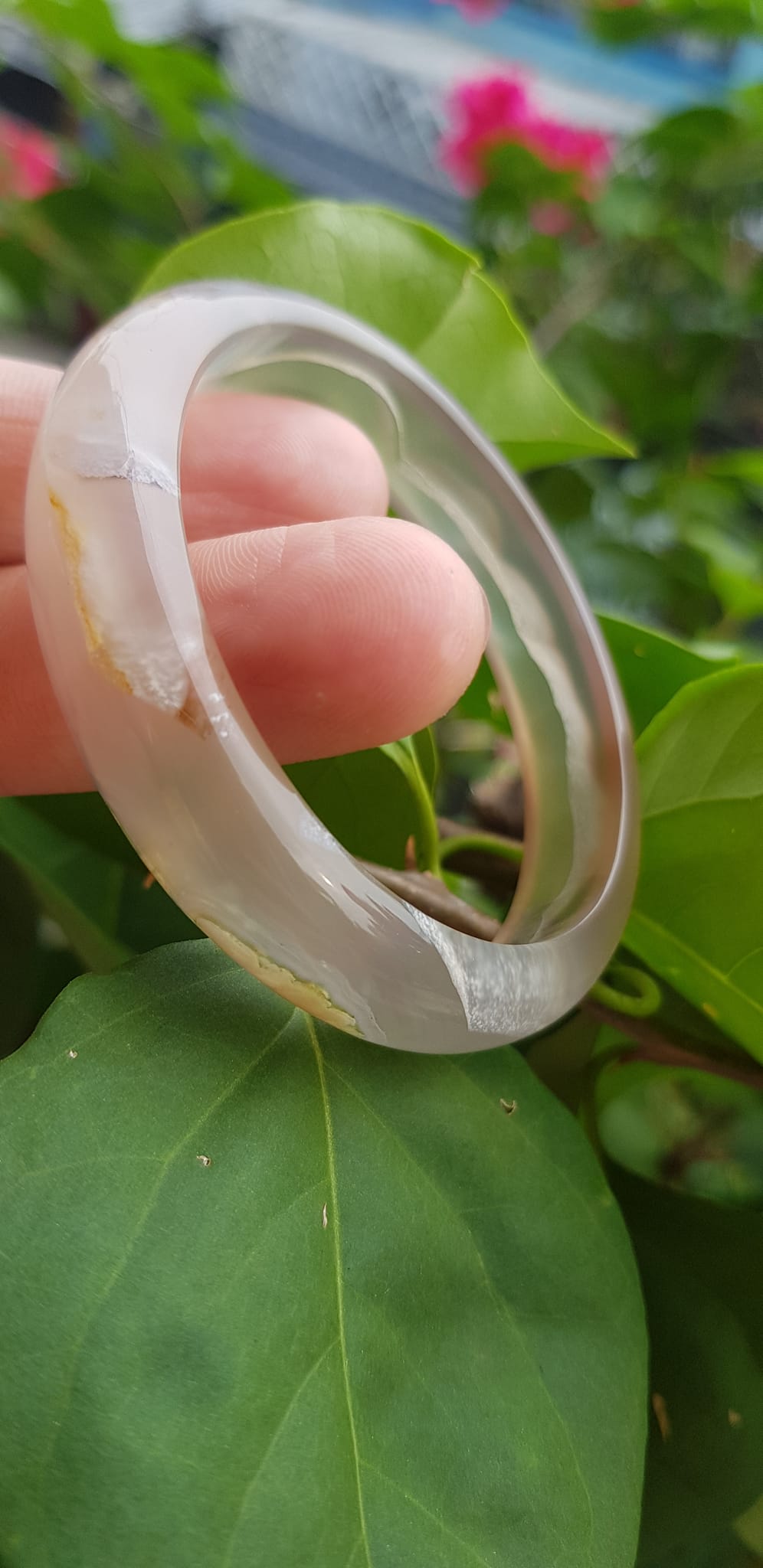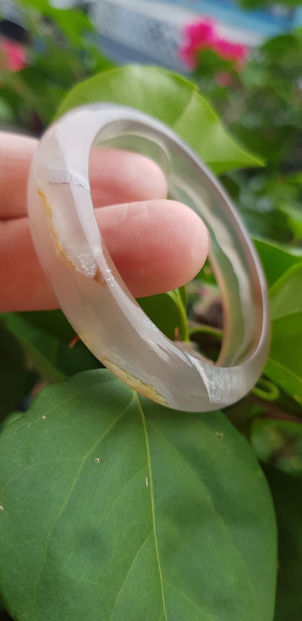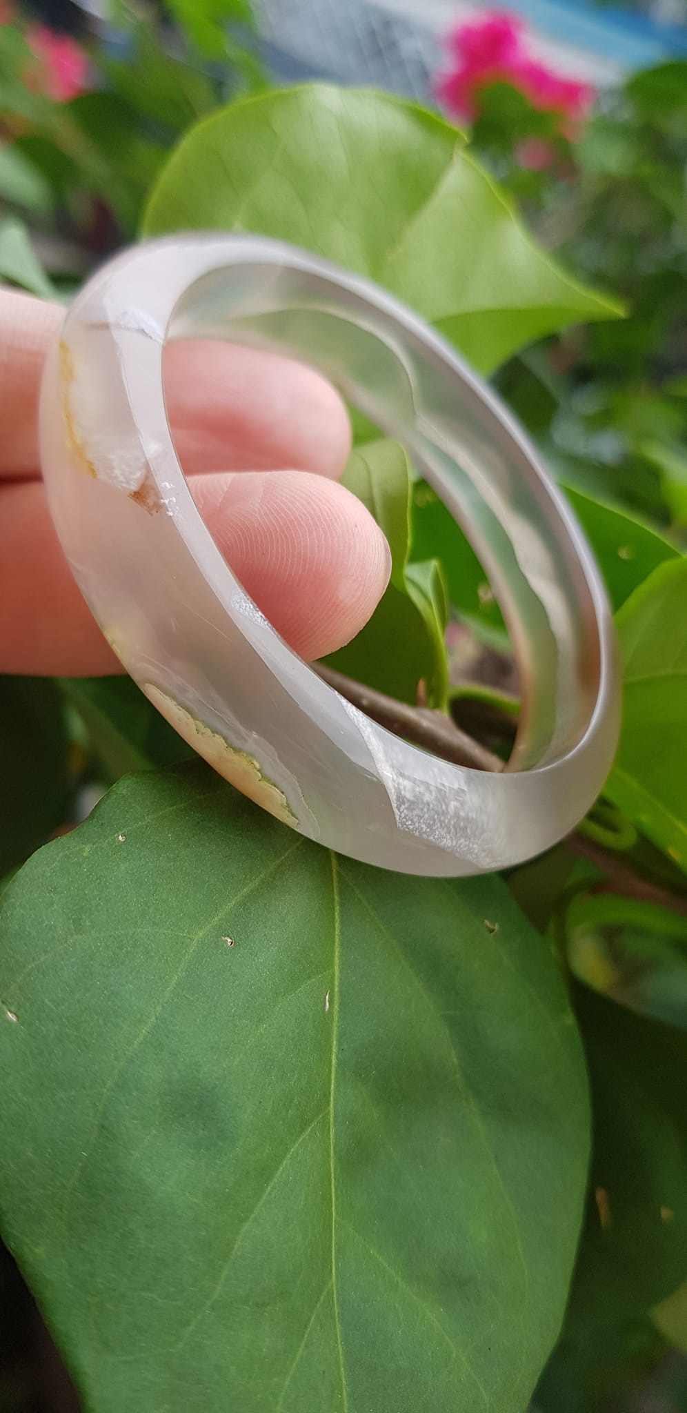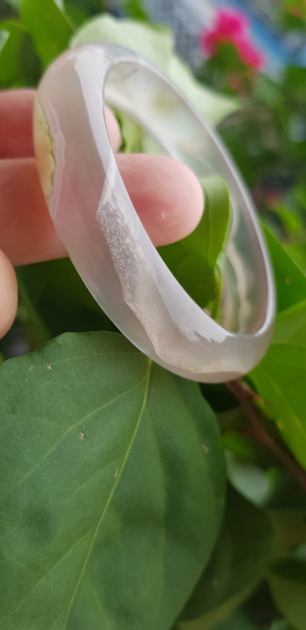 ✨Vòng tay phong thuỷ Nữ Bản Hẹ Đá Mã Não Trắng trong vân hoa đẹp Vòng màu trắng trong Ni 50mm x Cao 12mm x dầy 6,5mm Hợp nữ mệnh kim mệnh Thủy ạ