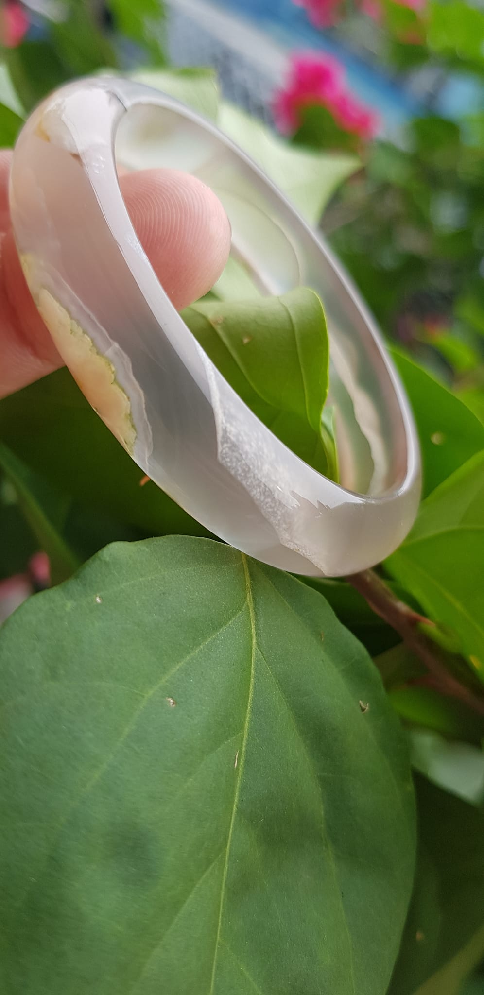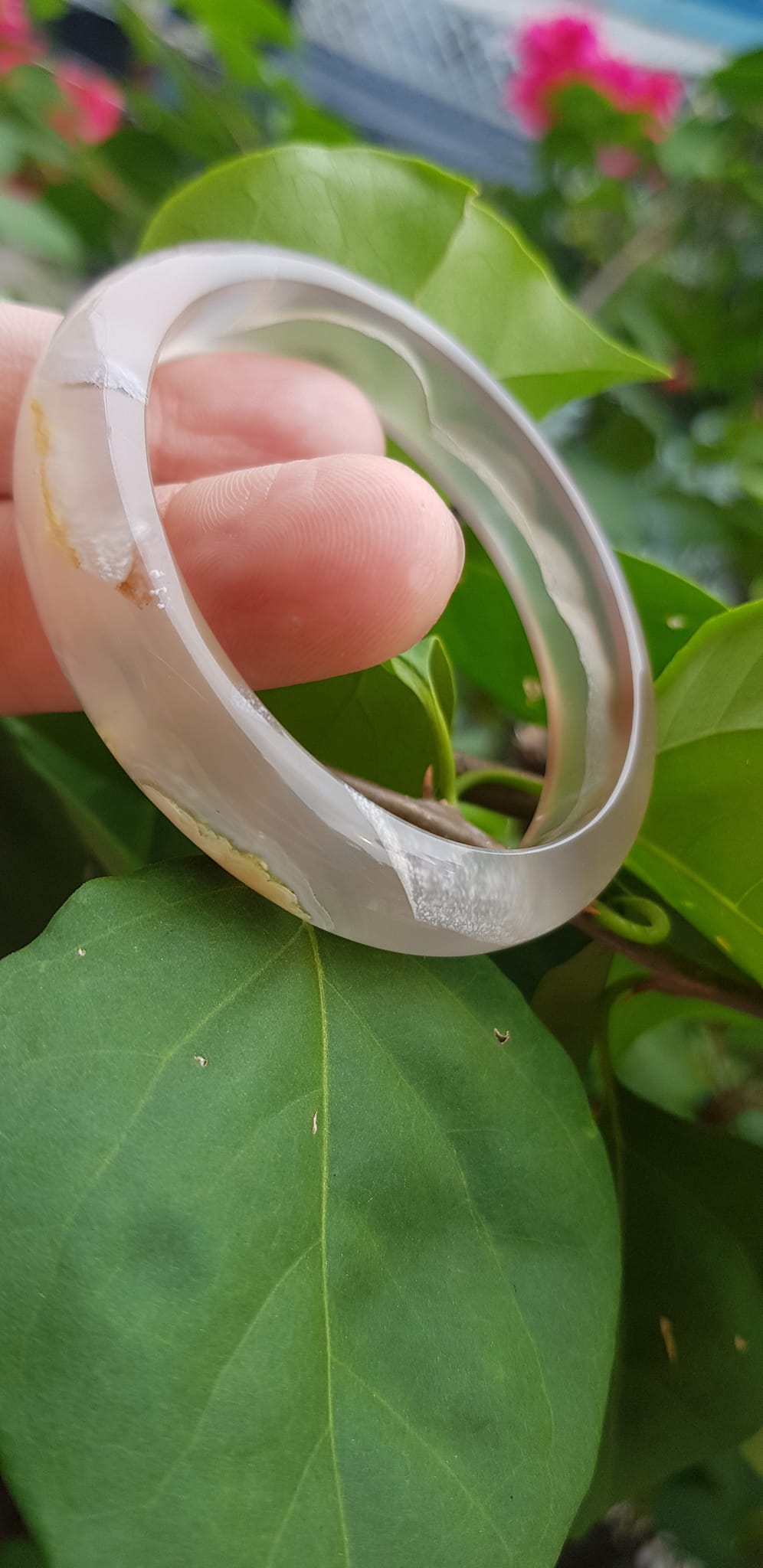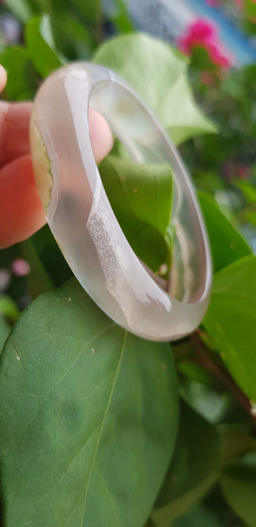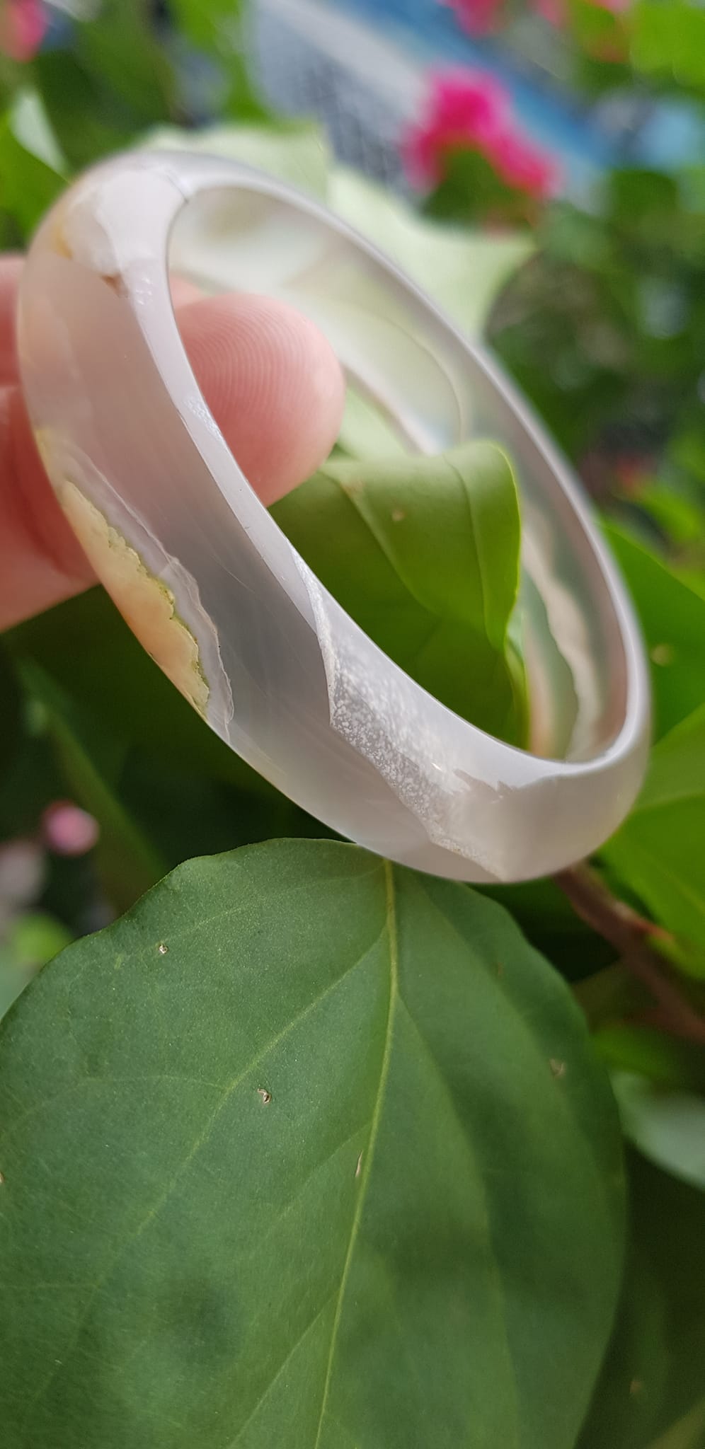 ✨Vòng tay phong thuỷ Nữ Bản Hẹ Đá Mã Não Trắng trong vân hoa đẹp Vòng màu trắng trong Ni 50mm x Cao 12mm x dầy 6,5mm Hợp nữ mệnh kim mệnh Thủy ạ
