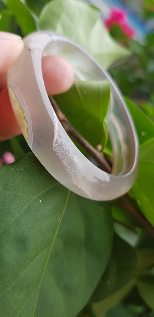 Mua tại TiktokVòng tay phong thuỷ Nữ Bản Hẹ Đá Mã Não Trắng trong vân hoa đẹp Vòng màu trắng trong Ni 50mm x Cao 12mm x dầy 6,5mm Hợp nữ mệnh kim mệnh Thủy ạ Sản