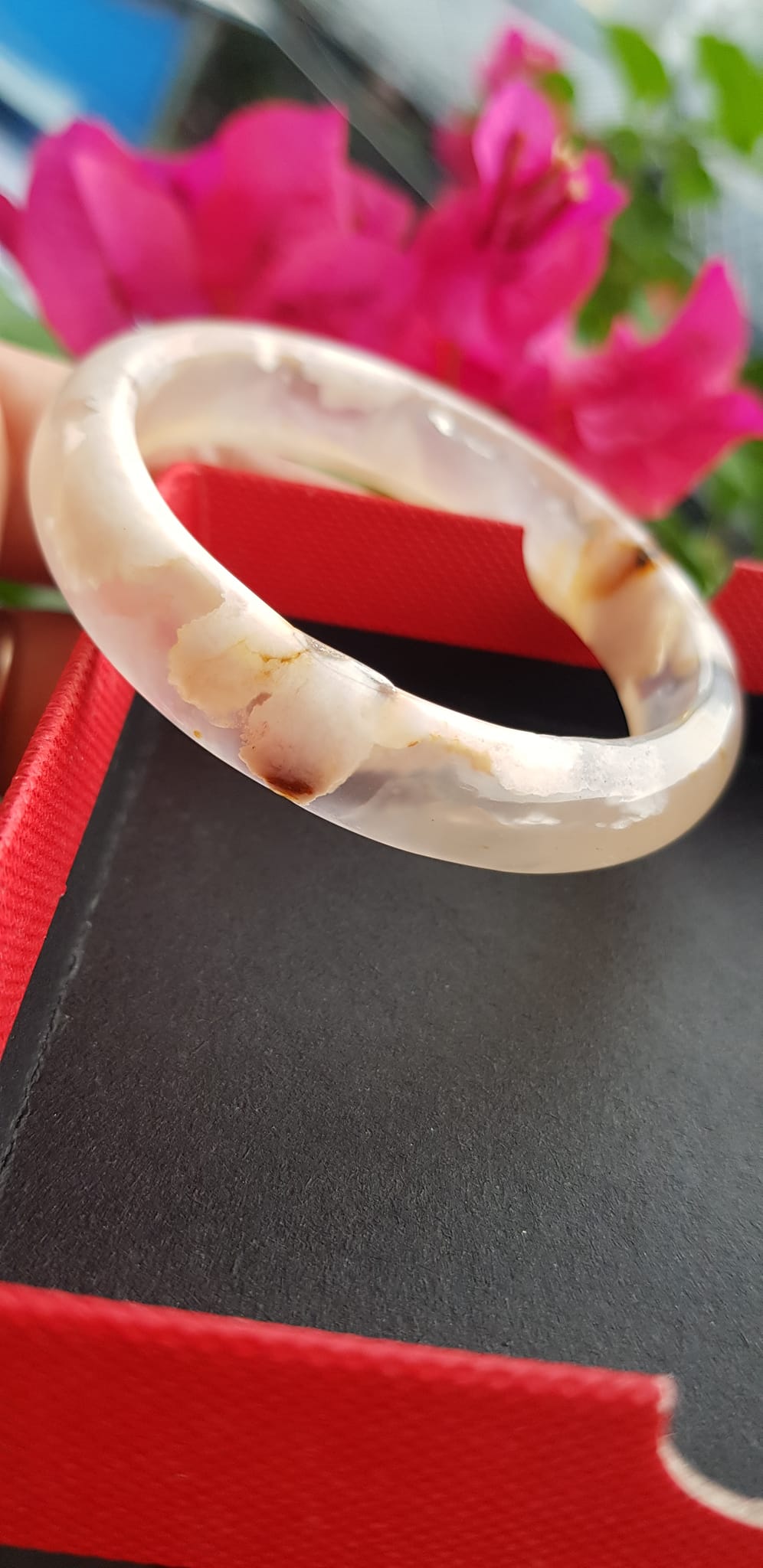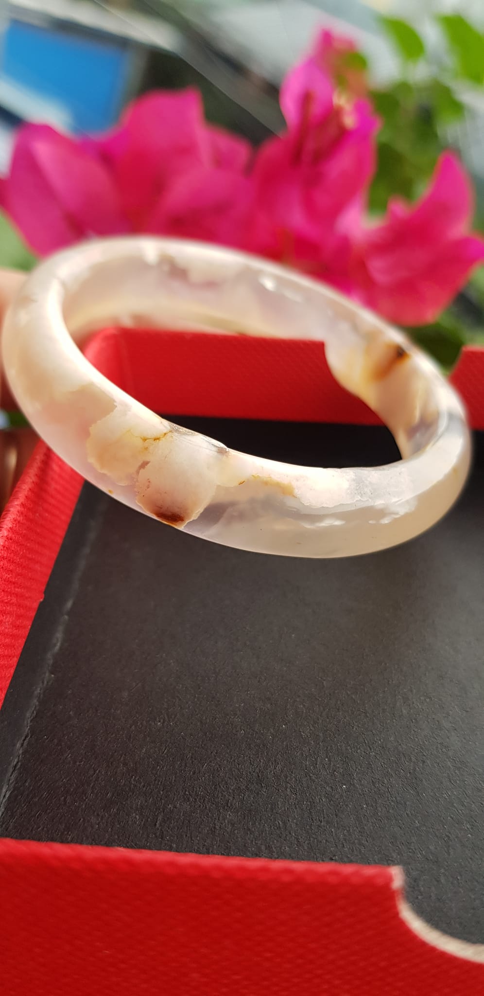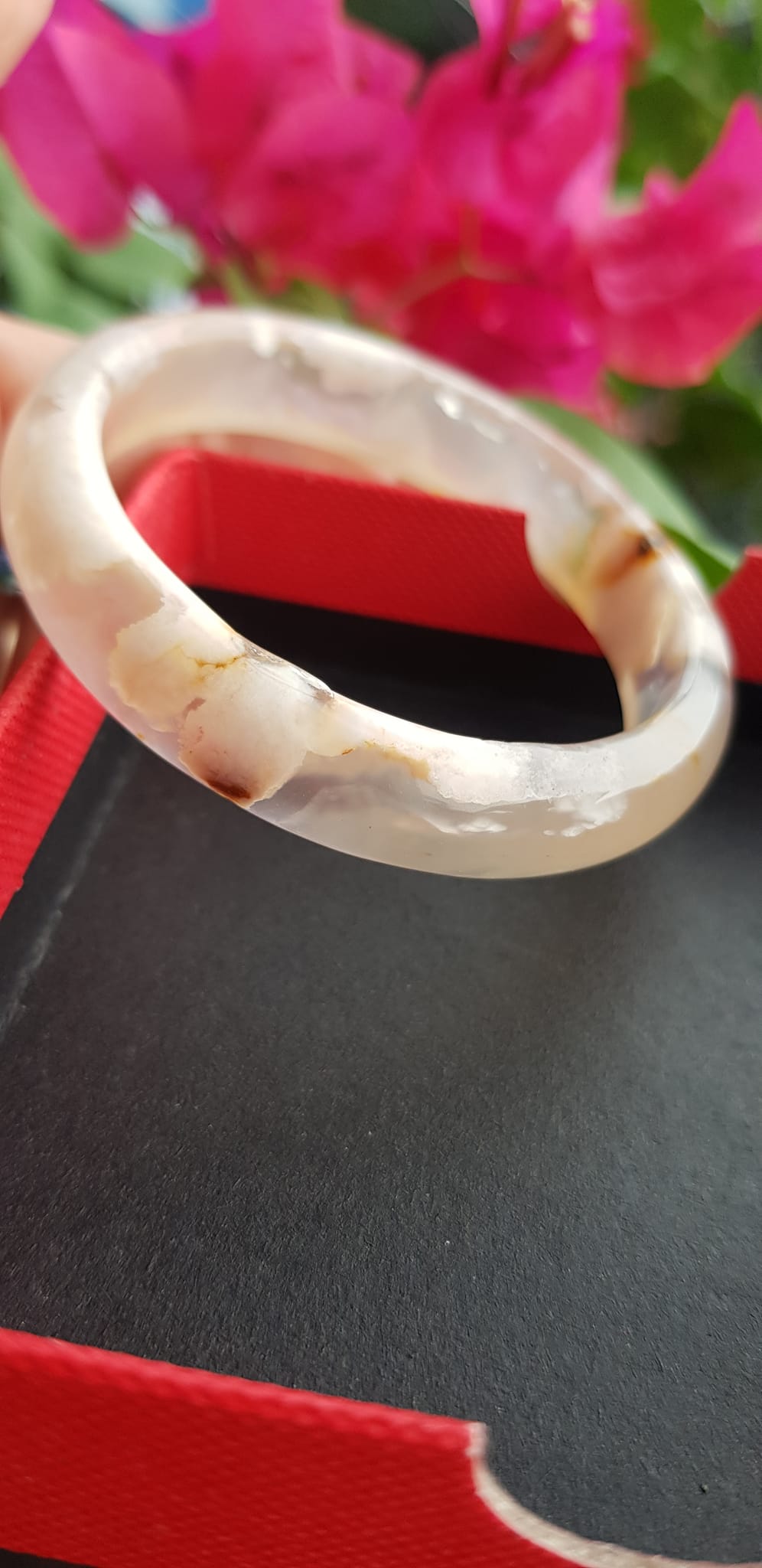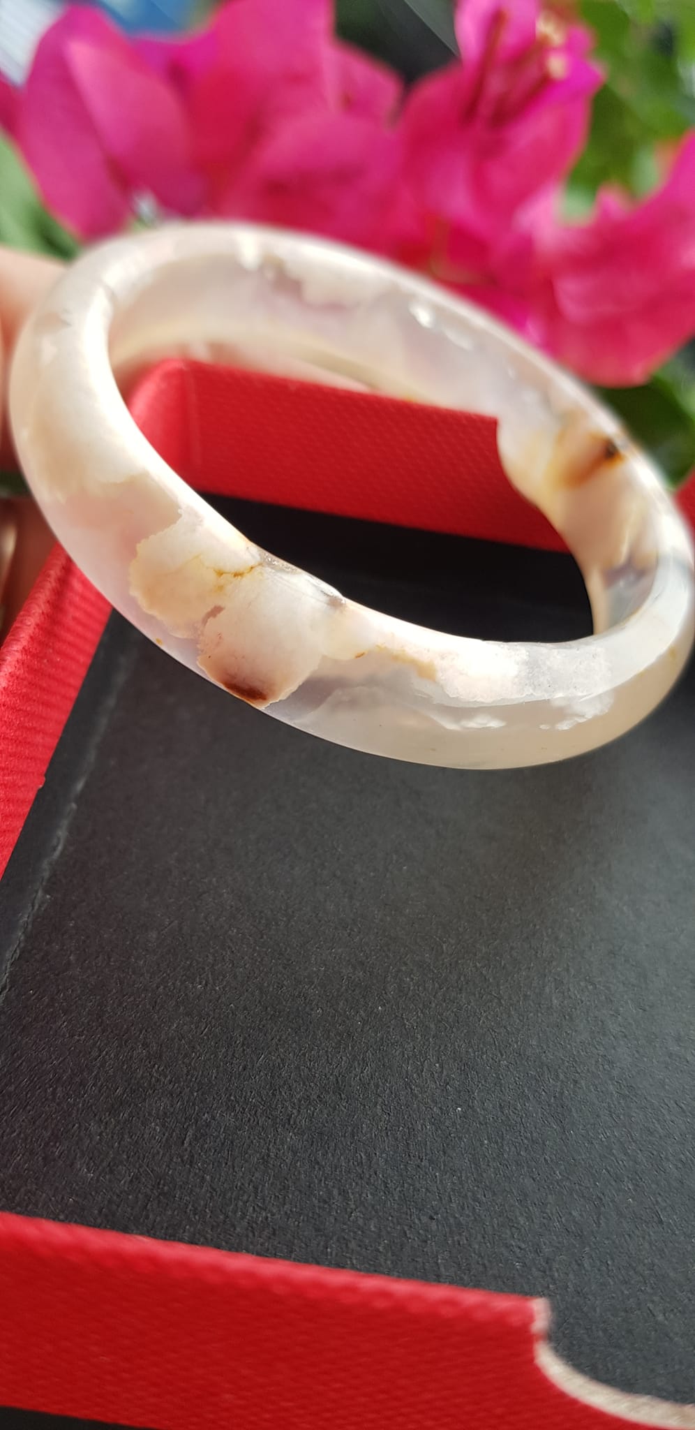 Vòng đeo tay Nữ Bản Hẹ Đá Mã Não Hoa Rau Câu Vòng tay Ni 53mm x Cao 10mm x dầy 7mm bóng đẹp Nữ 50kg - 53kg đeo xinh màu hoa nhẹ nhàng rất