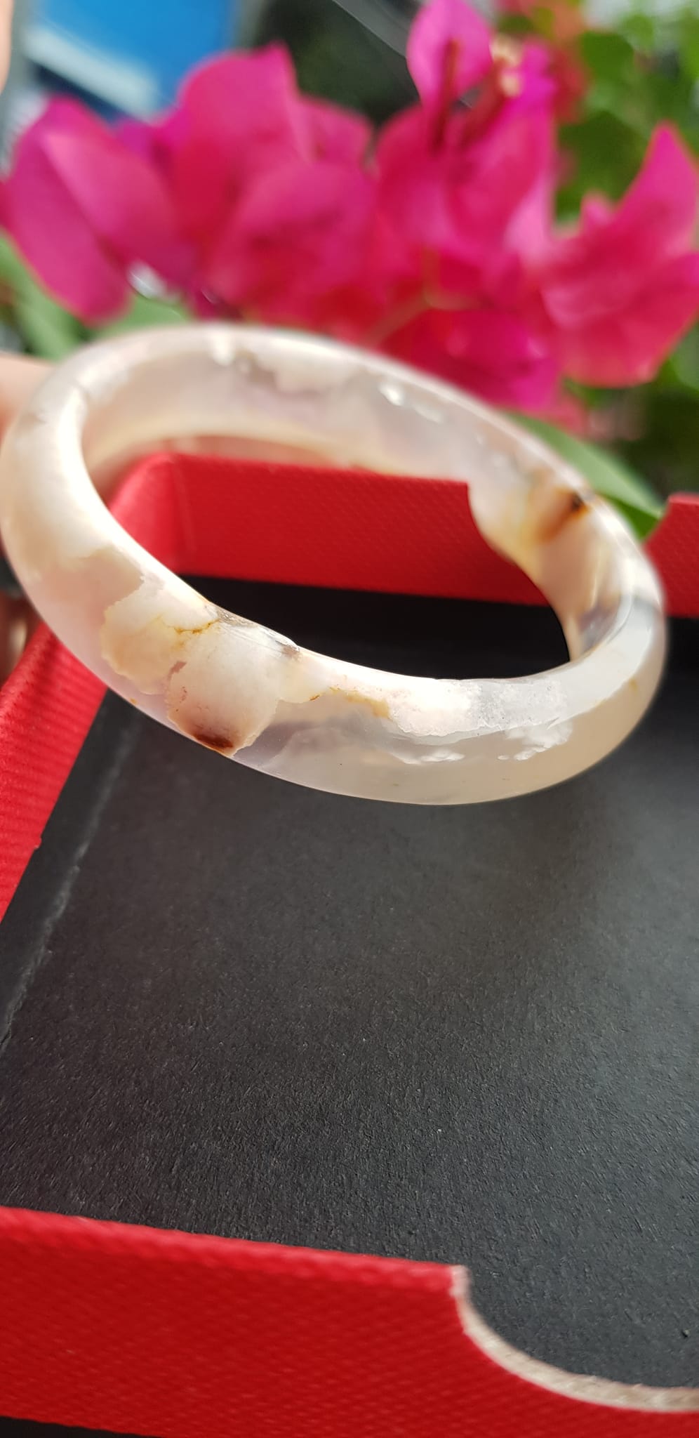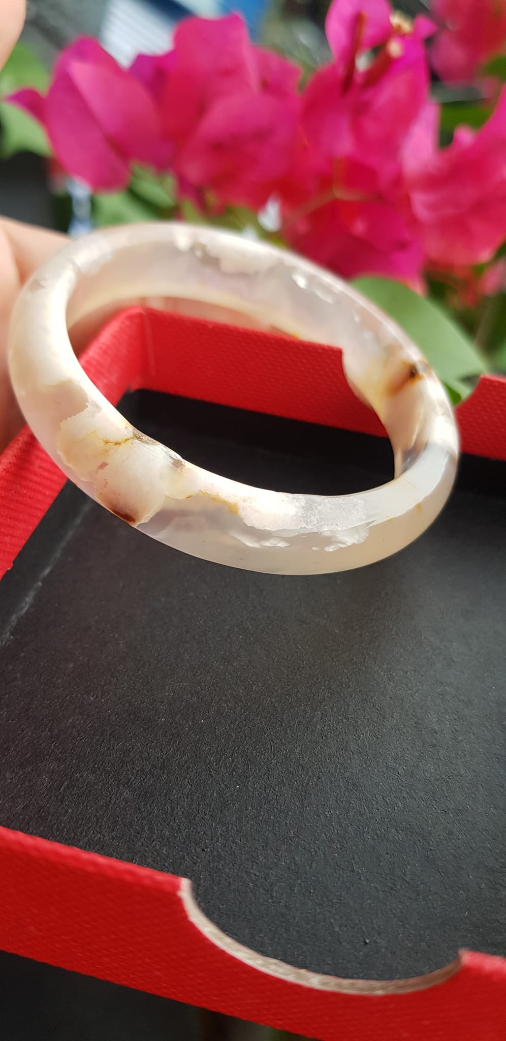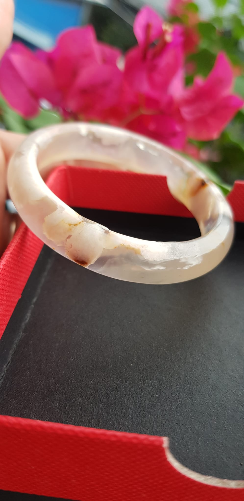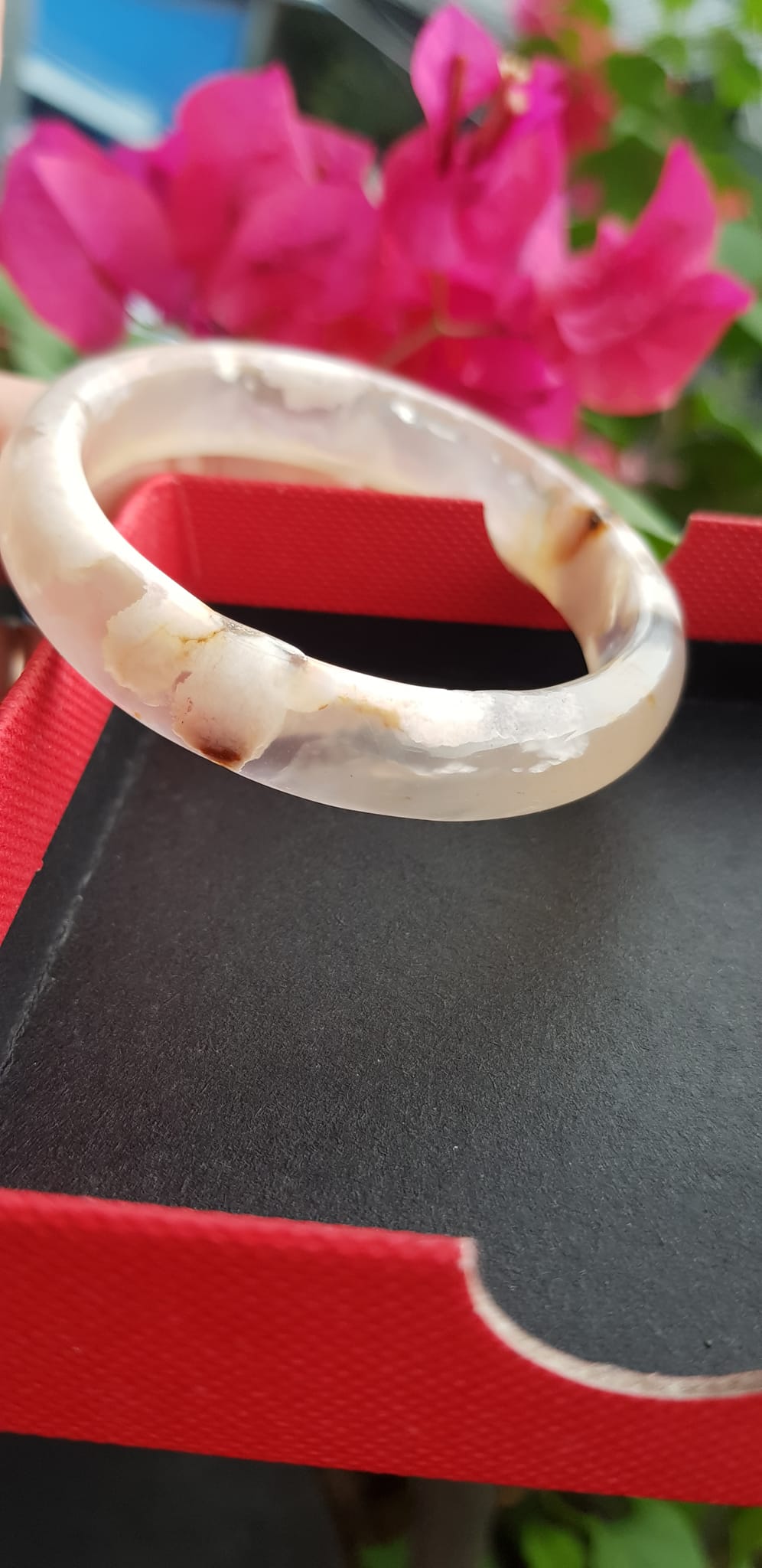 Vòng đeo tay Nữ Bản Hẹ Đá Mã Não Hoa Rau Câu Vòng tay Ni 53mm x Cao 10mm x dầy 7mm bóng đẹp Nữ 50kg - 53kg đeo xinh màu hoa nhẹ nhàng rất