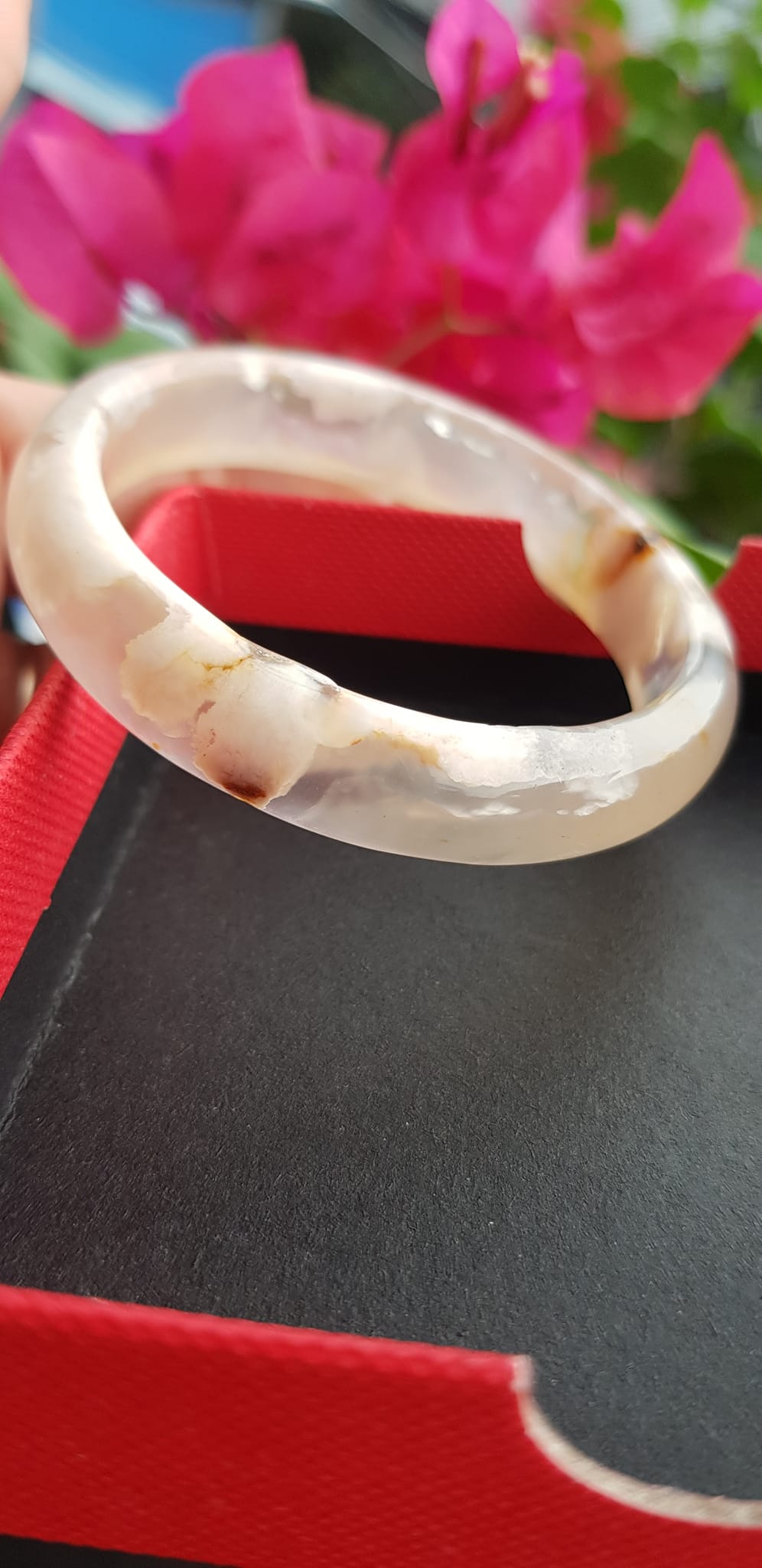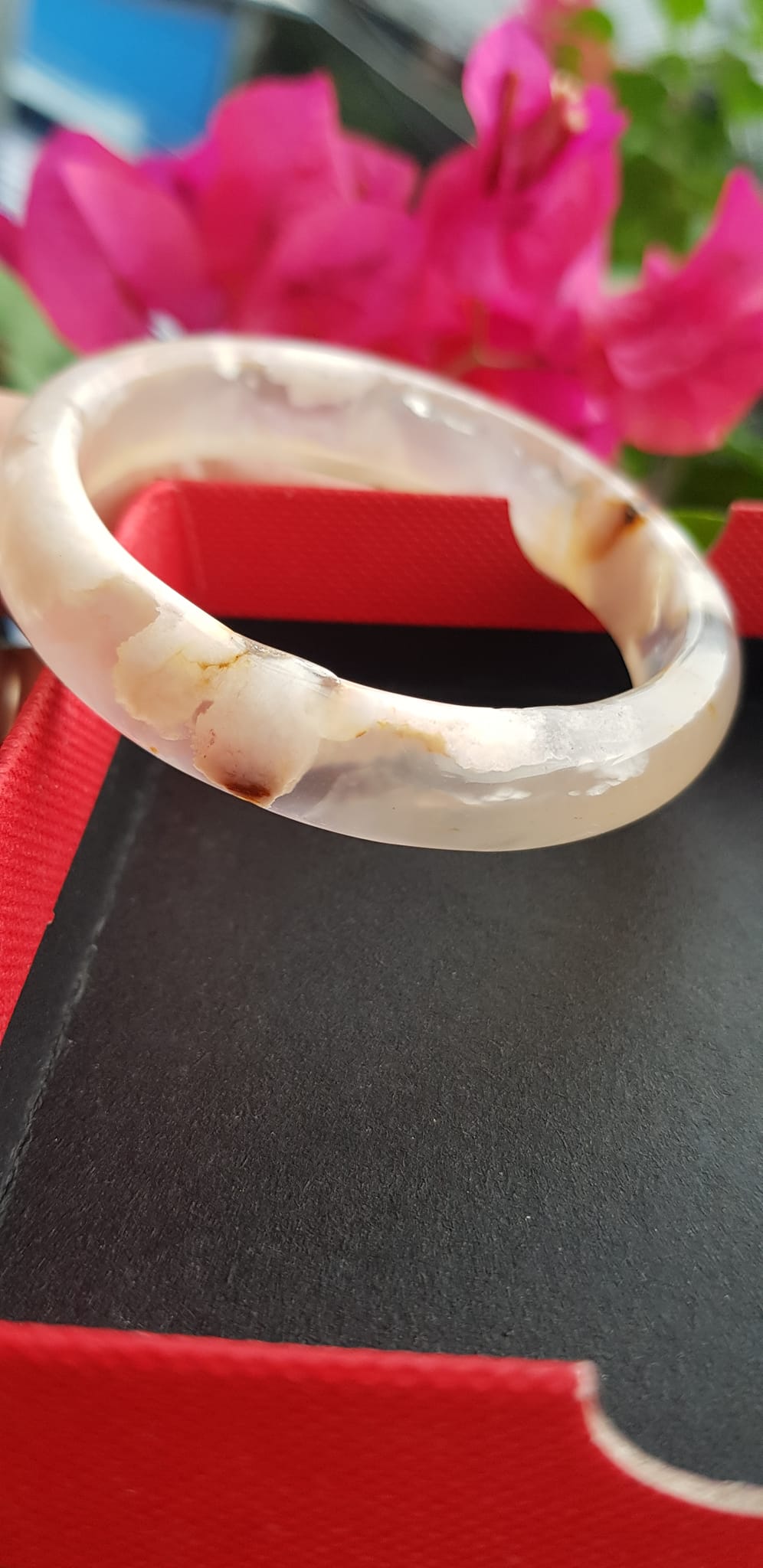 Vòng tay Nữ Bản Hẹ Mới Đá Mã Não Bông Tuyết Hồng nhẹ trắng trong bóng đẹp Ni 53mm 52kg-55kg SUNNY Q8