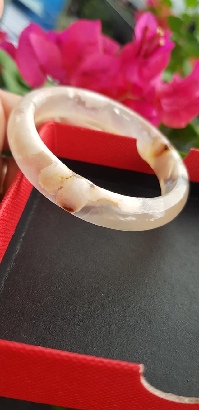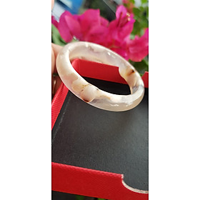 Vòng tay phong thuỷ Nữ Bản Hẹ Đá Mã Não Trắng trong vân hoa đẹp Vòng màu trắng trong Ni 50mm x Cao 12mm x dầy 6,5mm Hợp nữ mệnh kim mệnh Thủy ạ Sản