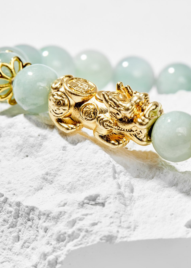 Vòng tay phong ngọc bích mạ vàng 18k đem lại may mắn an lành, toát lên vẻ cao sang phú quý