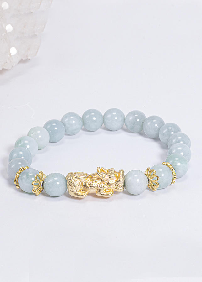 ✨Vòng Tay Phong Thủy Nữ Đá Cẩm Thạch Phỉ Thúy Phối Charm Tỳ Hưu Mạ Vàng 24K (8mm) Mệnh Mộc, Hỏa Ngọc Quý Gemstones