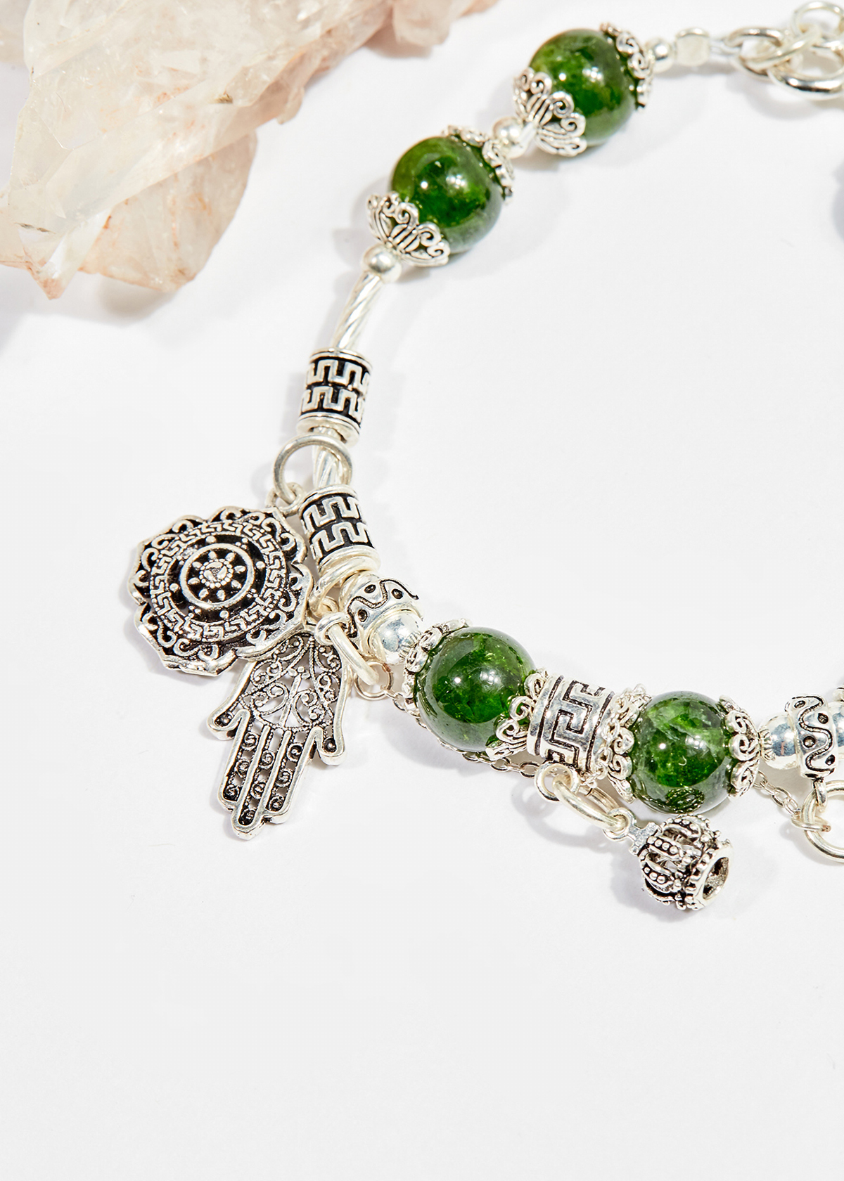 - Vòng Tay Laliz Mệnh Mộc, Hỏa Đá Khổng Tước 8ly Cham Bạc Hồ Lô - TAR.17 được làm từ loài đá tự nhiên kết hợp Bạc 925, không chỉ là một món trang sức