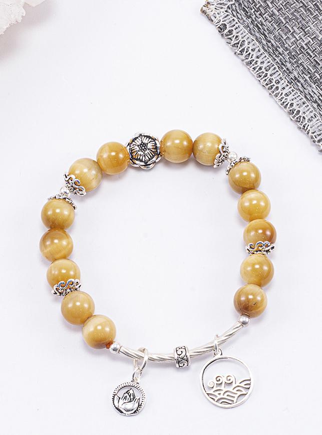 Vòng Tay Phong Thủy Nữ Đá Mắt Hổ Vàng Tâm Phối Charm Hoa Sen Bạc (8mm) Mệnh Thổ, Kim Từ xưa đến nay đá mắt hổ vàng tâm như một viên đá vô cùng tuyệt