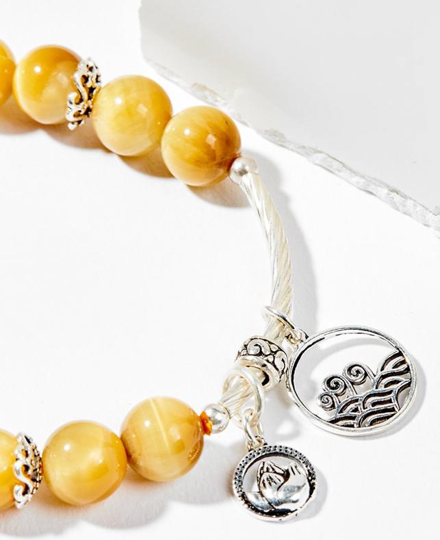 Vòng tay thiên nhiên đá mắt hổ vàng tâm phối charm bạc - Hợp mệnh kim, thổ | Ngọc Quý Gemstones |