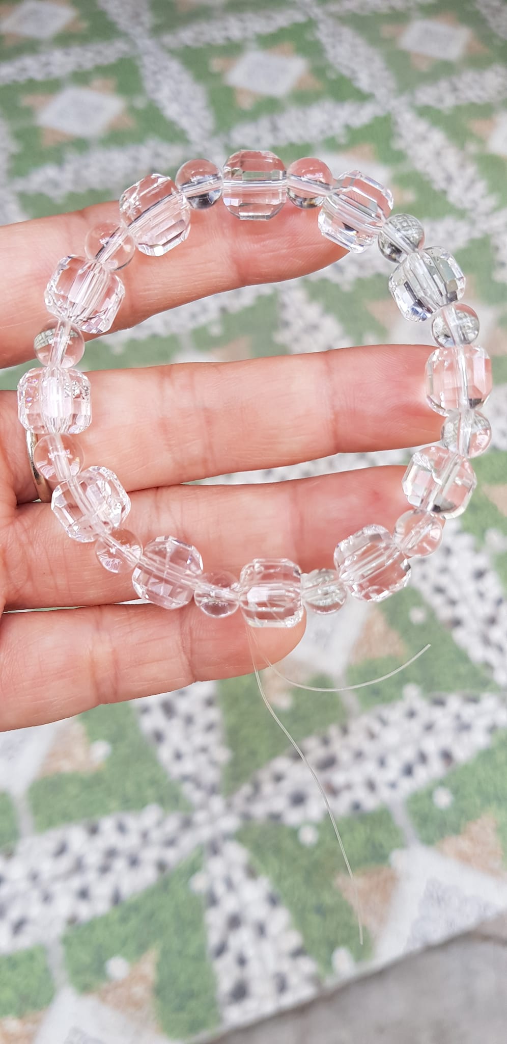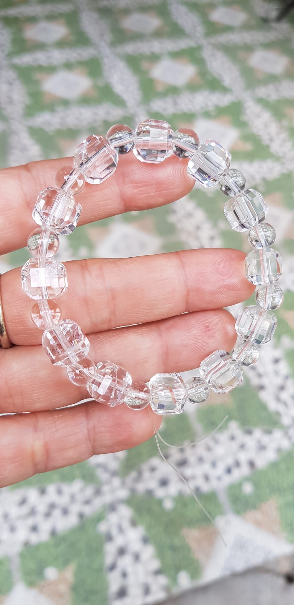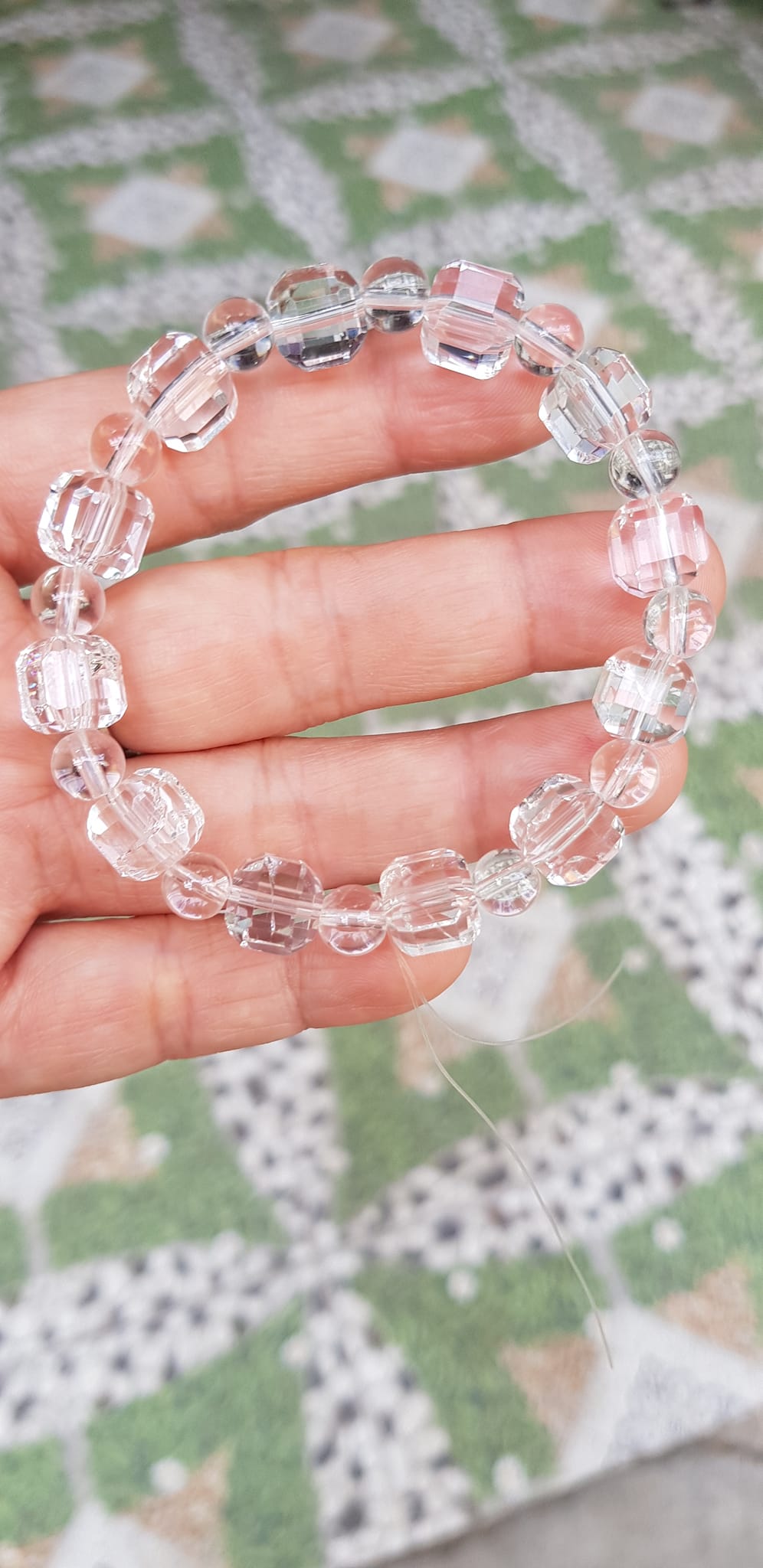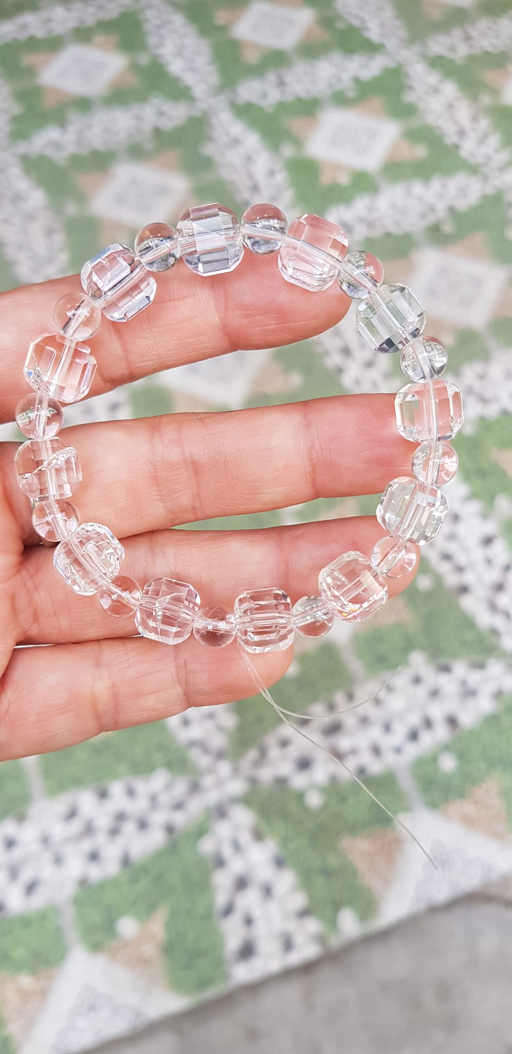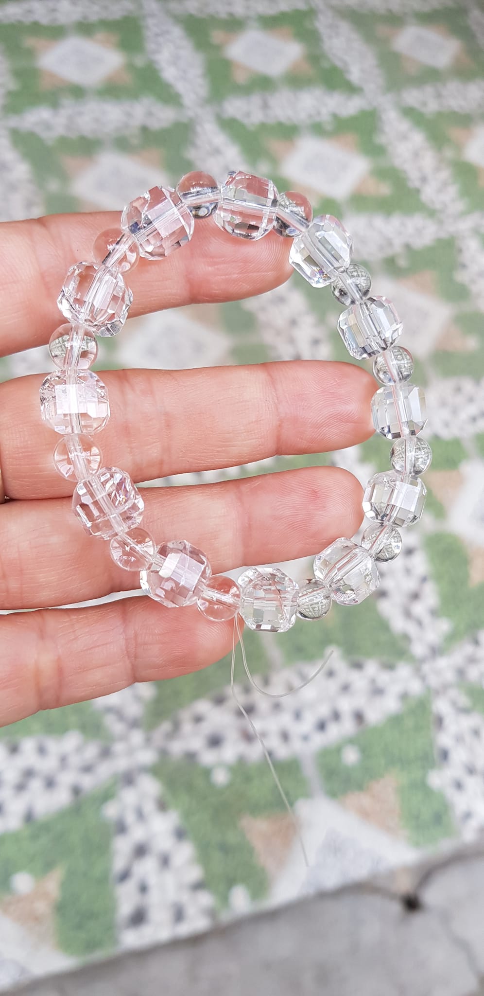 ✨ Vòng tay phong thuỷ nữ đá thạch anh trắng trong tự nhiên kiểu vuông giác tròn Size hạt vuông 10mm hạt tròn nhỏ 6mm Nữ mệnh kim mệnh Thủy đeo hợp may mắn tốt sức khoẻ công việc ạ