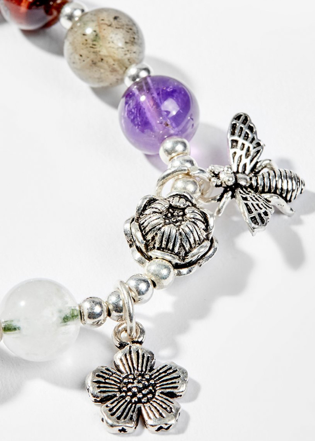 Vòng Tay Phong Thủy Nữ Đá Thiên Nhiên Đa Sắc Phối Charm Ong Bạc (8mm) Nhiều Mệnh