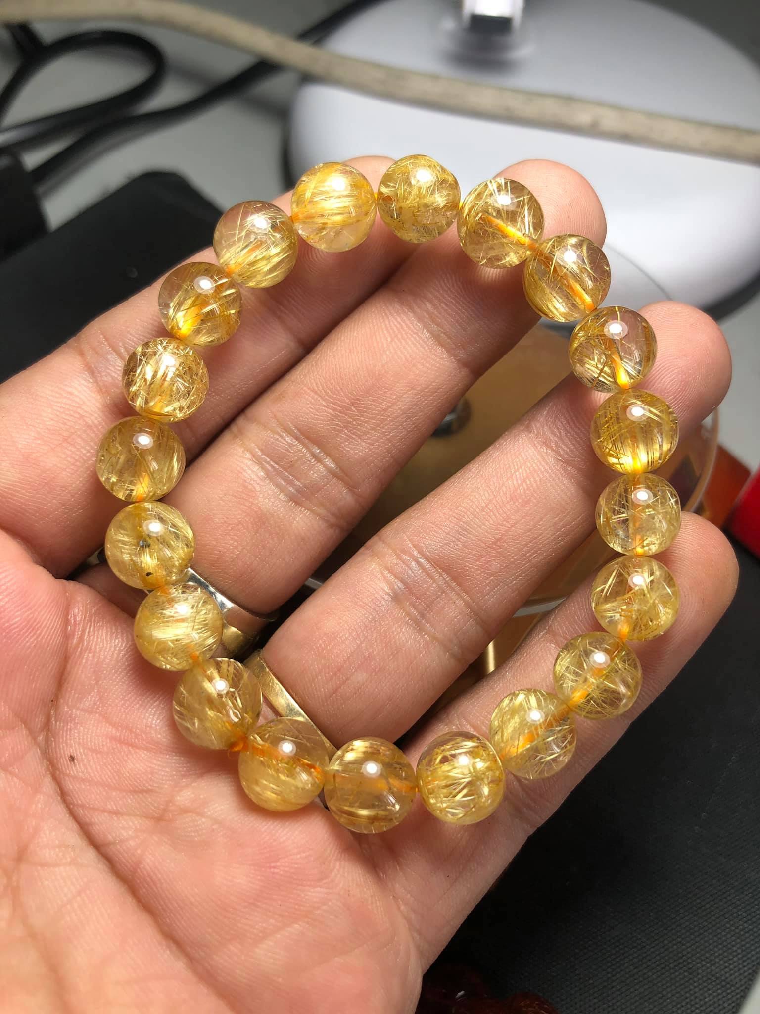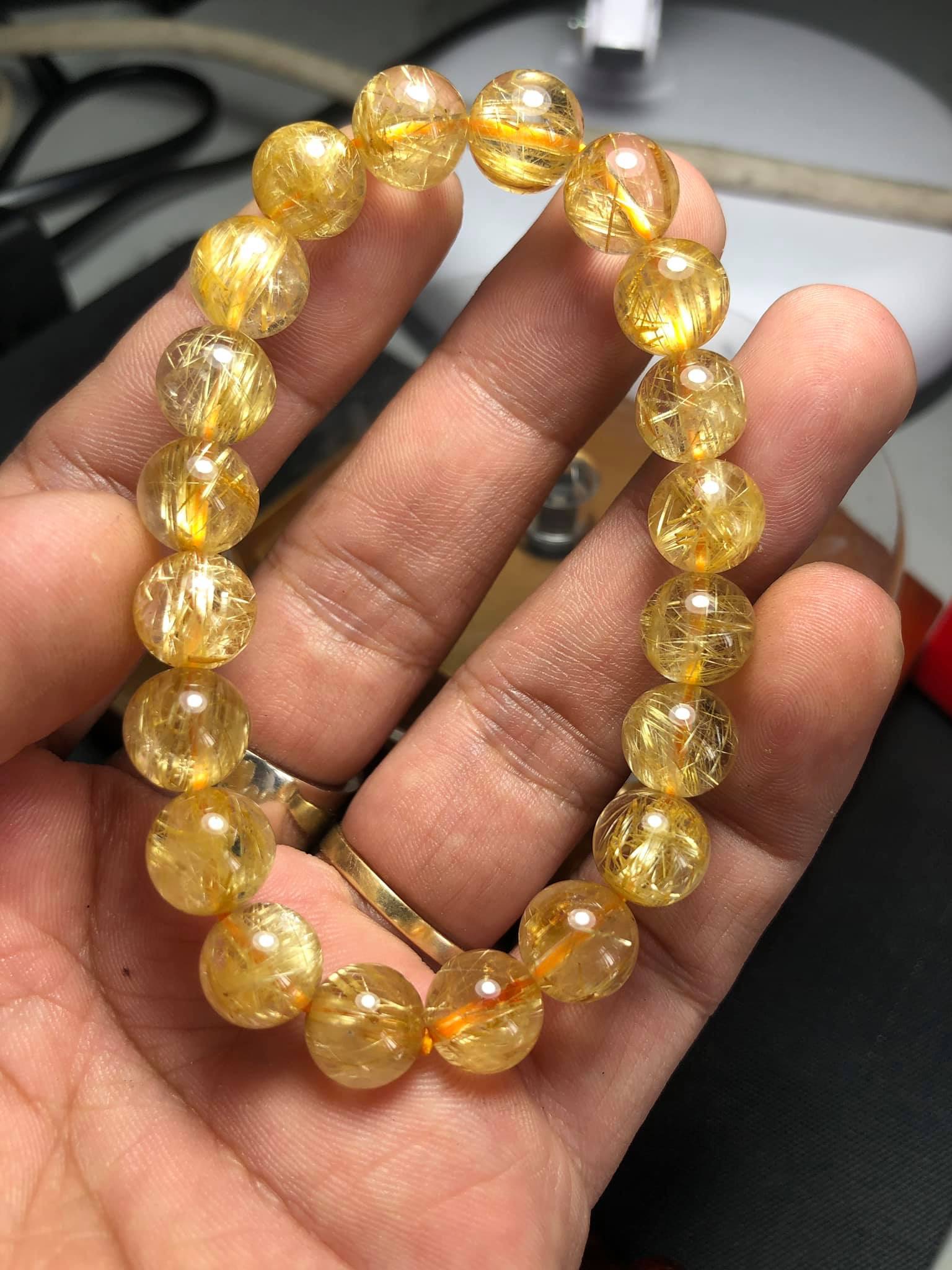 ✨Vòng Tay phong thuỷ Thạch Anh Tóc Vàng 10mm Hàng Đẹp 4A Tóc Ánh Kim T2300700