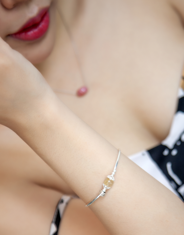 Vòng tay nữ thạch anh tóc đen dầy kín tự nhiên