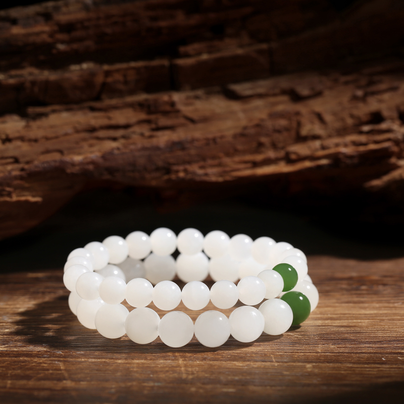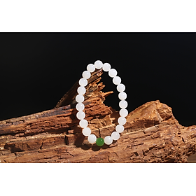 ✨Vòng tay phong thủy, vòng tay may mắn đá mã não trắng mix 1 hạt đá thạch anh xanh