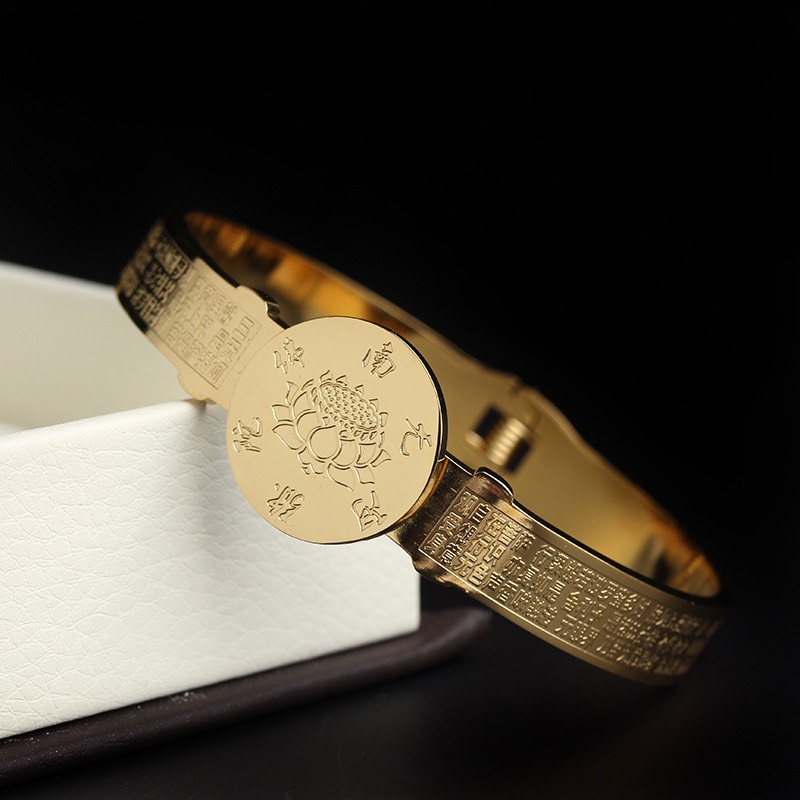 Vòng tay nam nữ titan khắc chú đại bi mix hoa sen phong thủy dạng tròn cao cấp sáng đẹp