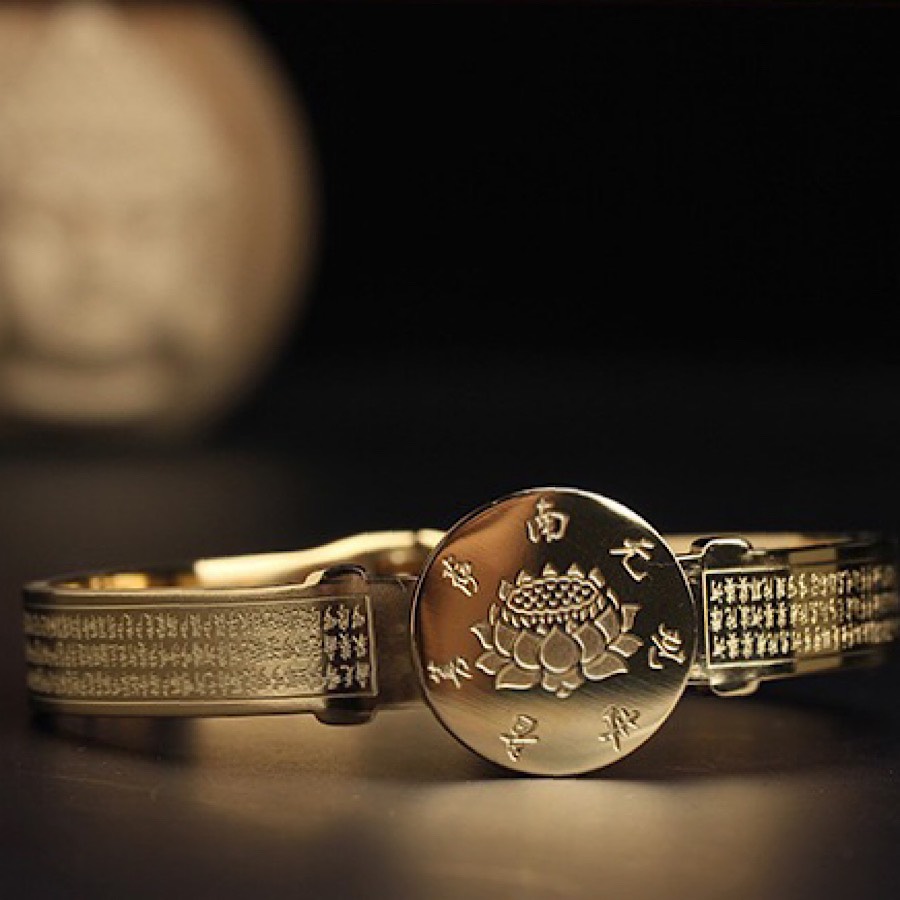 - Đặc biệt trên vòng còn khắc biểu tượng hoa sen của nhà Phật. Hoa sen là tượng trưng cho nghị lực phi thường, vươn lên từ bùn đất mang tới hương thơm cho đời. Đây cũng là loài hoa thể hiện sự tinh khiết, thanh tịnh. Trong phật học thì hoa sen chính là biểu tượng cho sự chuyển hóa.